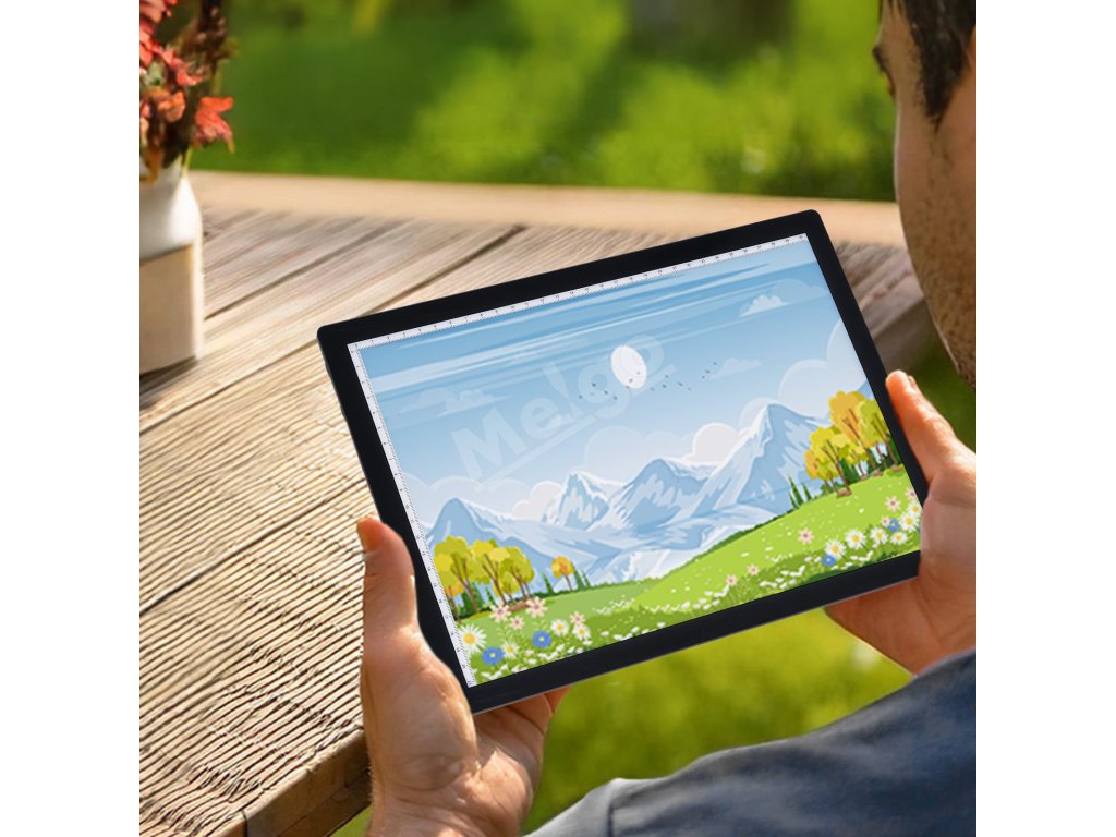 Táto svetelná tabuľa má dobíjaciu konštrukciu, vďaka ktorej nie je potrebné často meniť batérie alebo napájacie káble. Môžete začať tvoriť kedykoľvek a kdekoľvek - či už skicujete vonku, pracujete v ateliéri alebo hľadáte inšpiráciu na cestách. Náš svetelný box je pripravený splniť všetky vaše potreby.