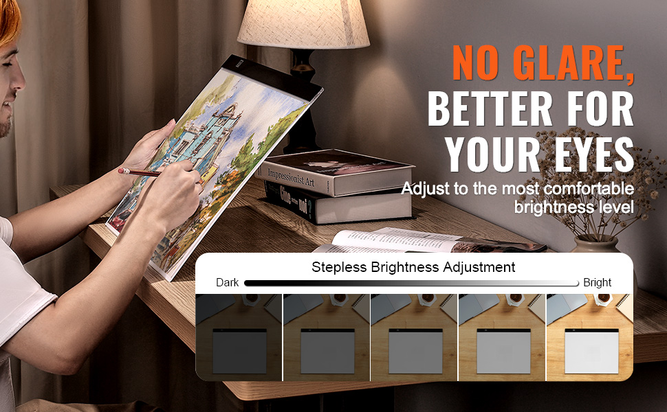 Jas svetelnej skrinky si môžete nastaviť tak, aby vyhovoval vášmu prostrediu. Poskytuje osvetlenie bez tieňov a oslnenia, s mäkkým a rovnomerným svetlom, ktoré pomáha znižovať namáhanie očí a prináša tak pohodlnejší zážitok.