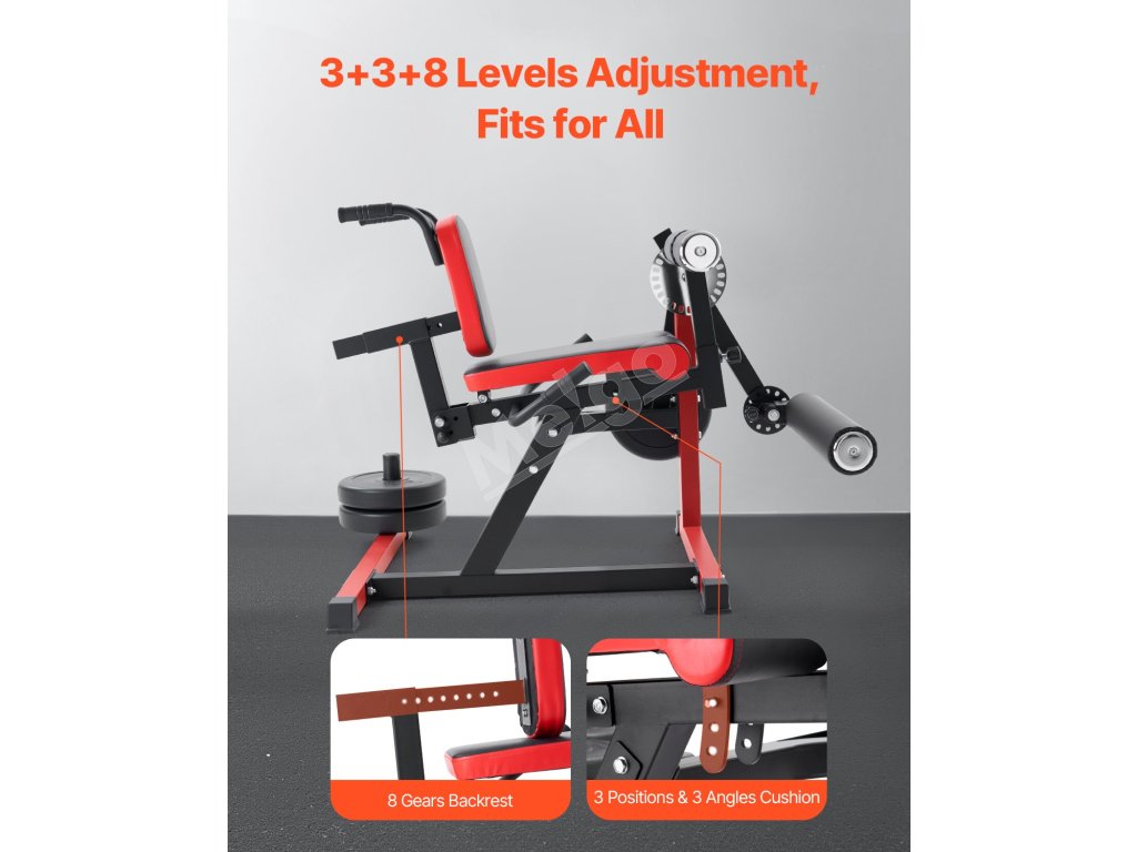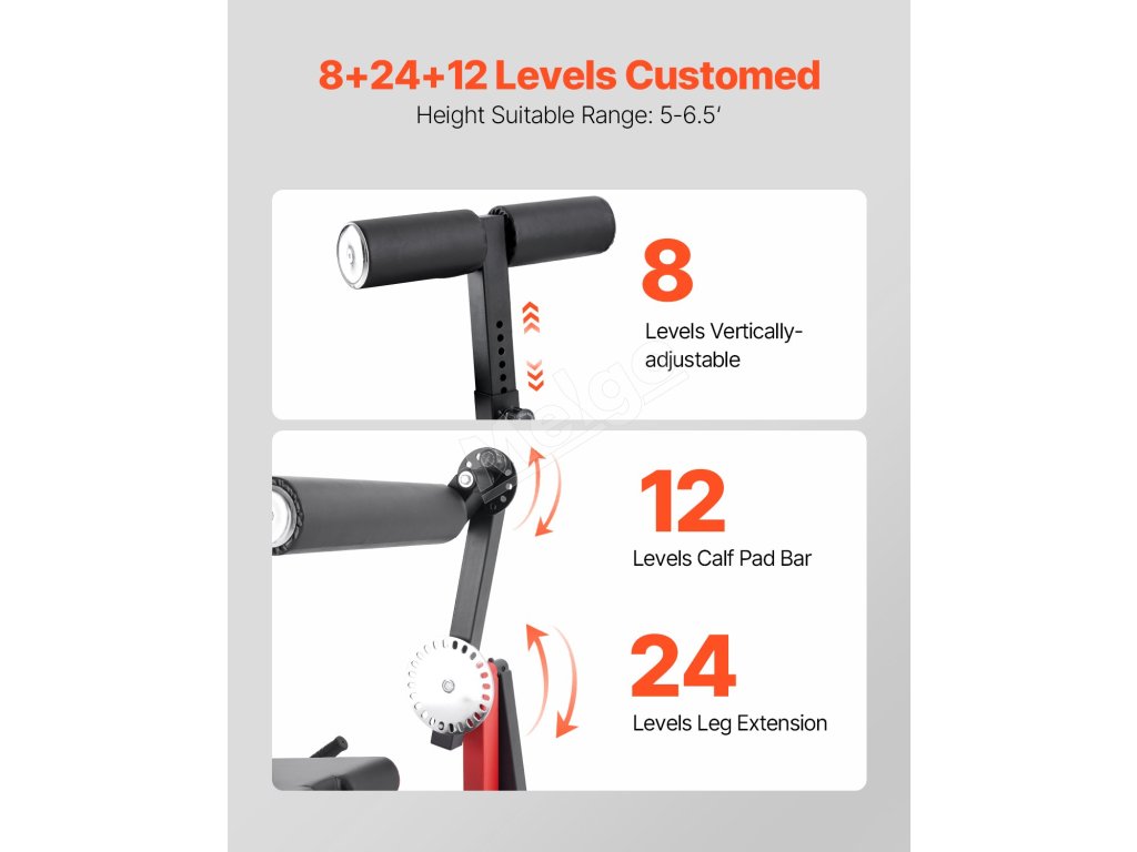 Navrhnutý pre 550 libier ultra silnej nosnosti, s vymeniteľnými 1in a 2in záťažovými stĺpikmi, stačí zvýšiť hmotnosť podľa vašich potrieb, ťažký nastaviteľný stroj na predlžovanie a sklápanie nôh vám pomôže zhodiť nadváhu a vybudovať očarujúcu postavu.