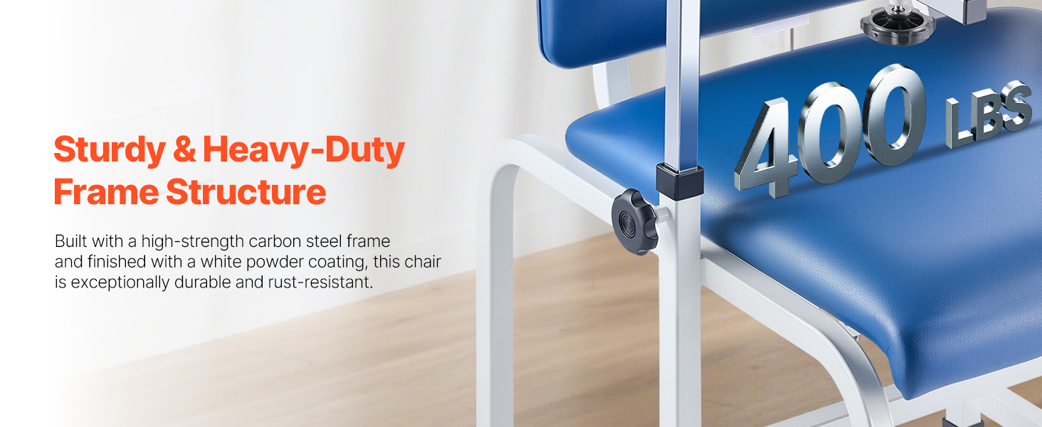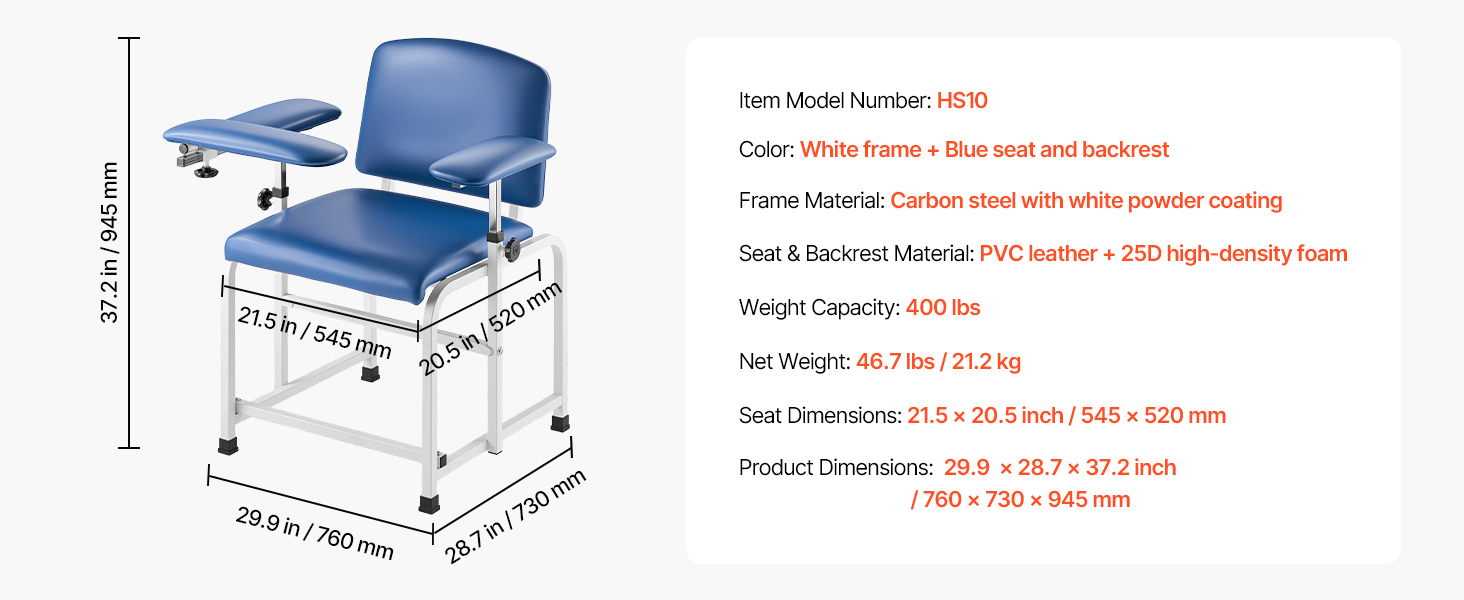 Táto nemocničná stolička na odber krvi, vyrobená z vysokopevnostného rámu z uhlíkovej ocele a povrchovo upravená bielou práškovou farbou, je odolná a nehrdzavie. S nosnosťou 181 kg/400 libier zabezpečuje spoľahlivú stabilitu a oporu pre používateľov rôznych typov postavy