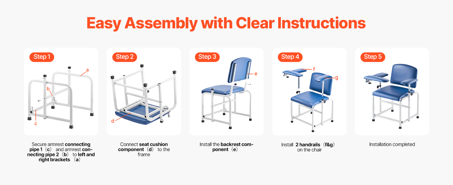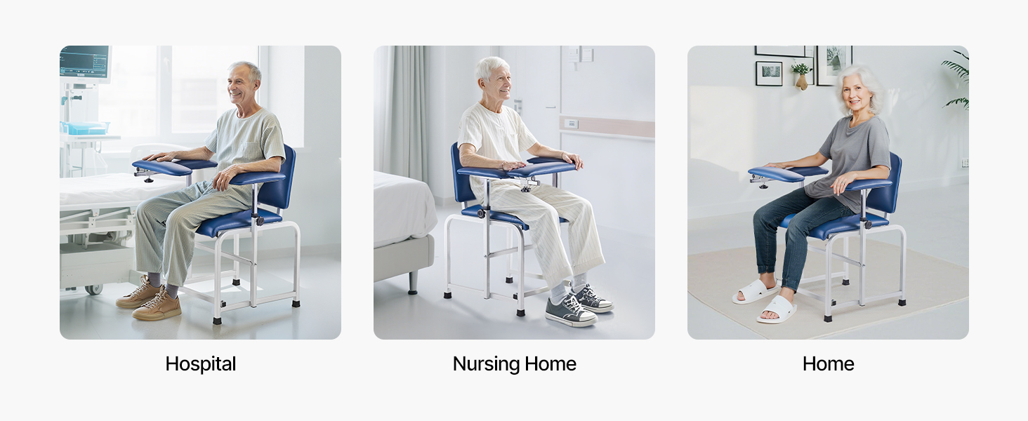 Stolička na odber krvi sa ľahko a rýchlo inštaluje a poskytuje stabilnú a pohodlnú oporu pri odbere krvi. Dodáva sa s jasnými pokynmi a potrebnými montážnymi dielmi, čo zabezpečuje bezproblémové nastavenie a rýchle používanie.