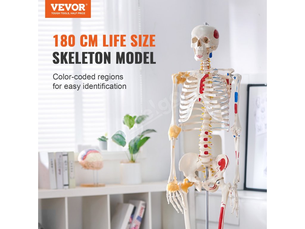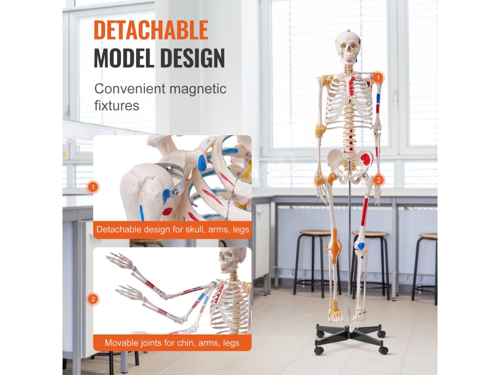 Anatomický skelet 1820 mm, pvc, s väzmi a označenými úponmi svalov