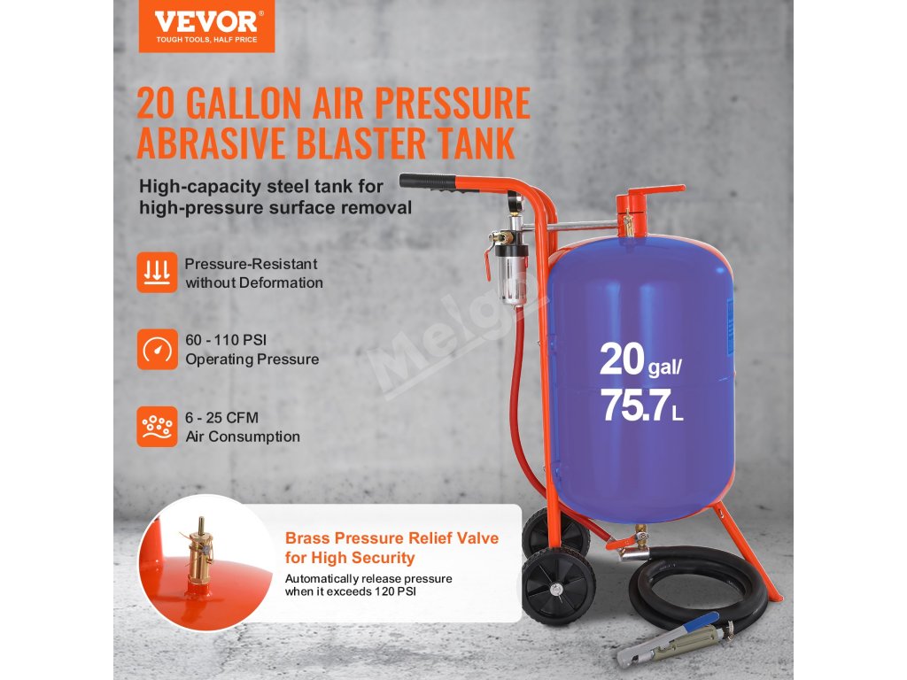 Vyberte si 20-galónový pieskovač VEVOR a zažite jednoduchšiu, efektívnejšiu a presnejšiu úpravu povrchu. Umožňuje vysokotlakovú úpravu povrchu, bez námahy odstraňuje hrdzu, farbu, škvrny a leští veľké plochy, pričom vykonáva aj dokonalé pieskovanie zakrivených povrchov a medzier.