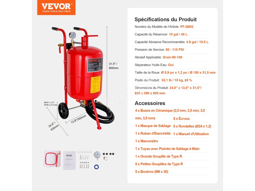 Vyberte si 10-galónový pieskovač VEVOR a zažite jednoduchšiu, efektívnejšiu a presnejšiu povrchovú úpravu. Umožňuje vysokotlakovú úpravu povrchu, bez námahy odstraňuje hrdzu, farbu, škvrny a leští veľké plochy, pričom vykonáva aj dokonalé pieskovanie zakrivených povrchov a medzier.