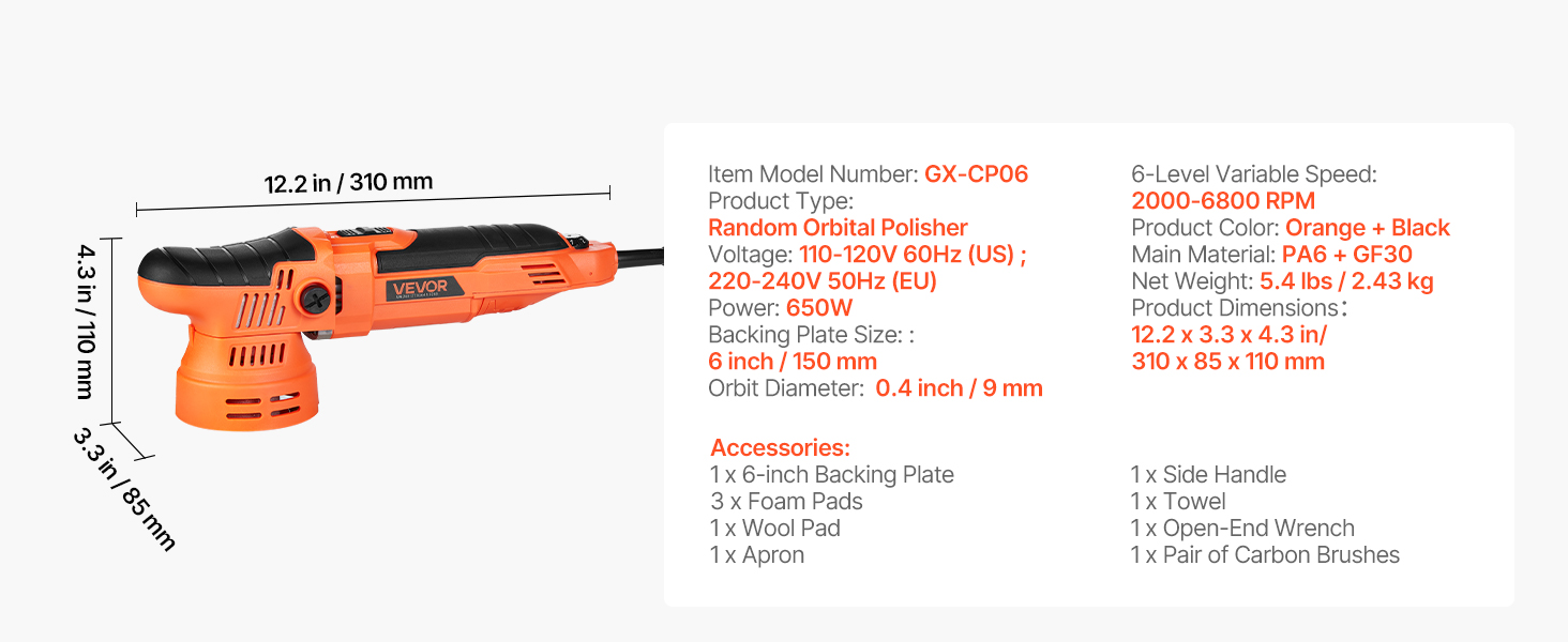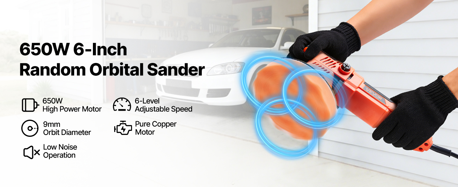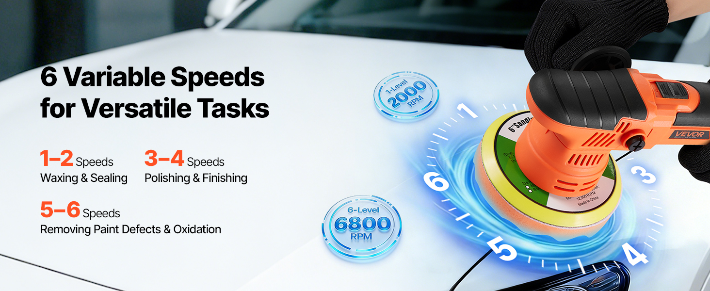 Orbitálna leštička na auto, 150 mm, 650 W, 6 rýchlostí, 2000–6800 rpm