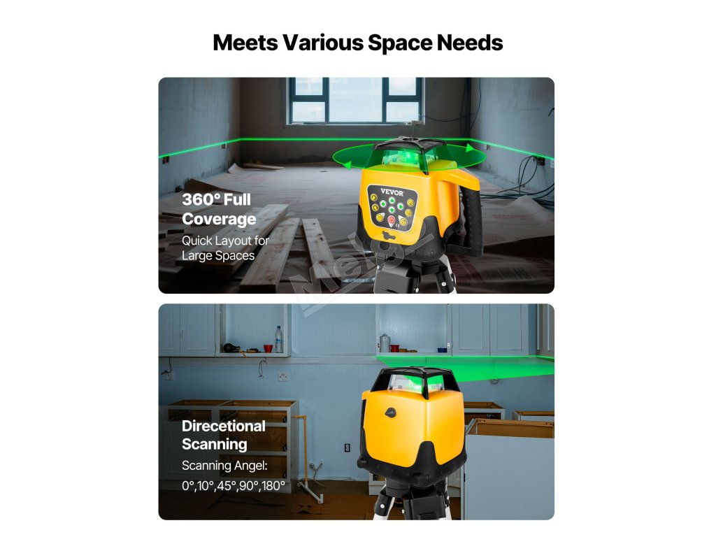 Podporuje horizontálne a vertikálne skenovanie s vysoko viditeľnými laserovými čiarami zelenej farby, pokrývajúcimi celú pracovnú plochu, odolné telo, jednoduché ovládanie, ideálny laserový tranzitný nástroj pre stavebné a renovačné projekty.