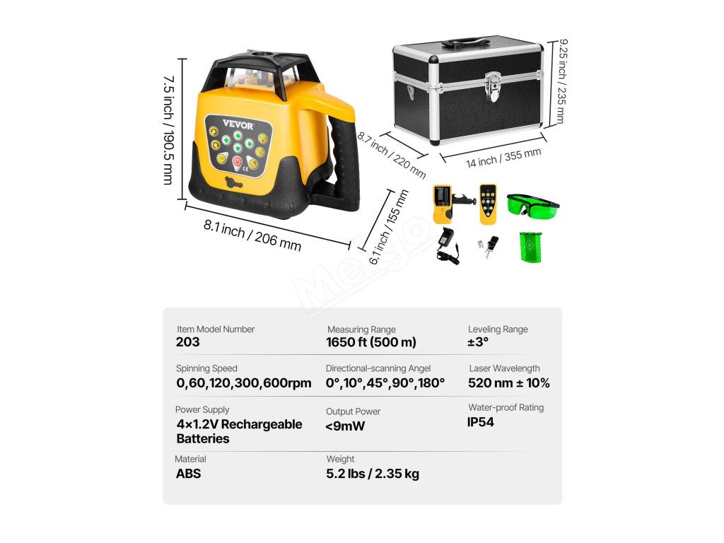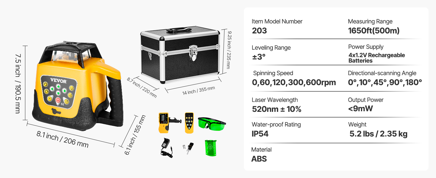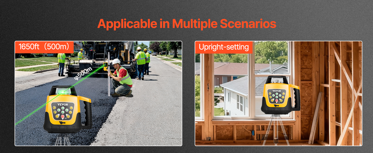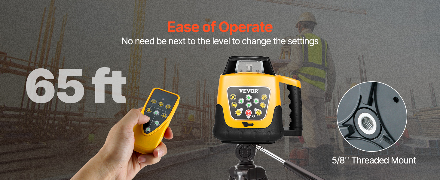 V spojení s laserovým detektorom a diaľkovým ovládaním dosahuje maximálna vzdialenosť na diaľku 65 stôp, podporuje vertikálnu aj horizontálnu montáž pre všestranné použitie laserového vodovážneho náradia.