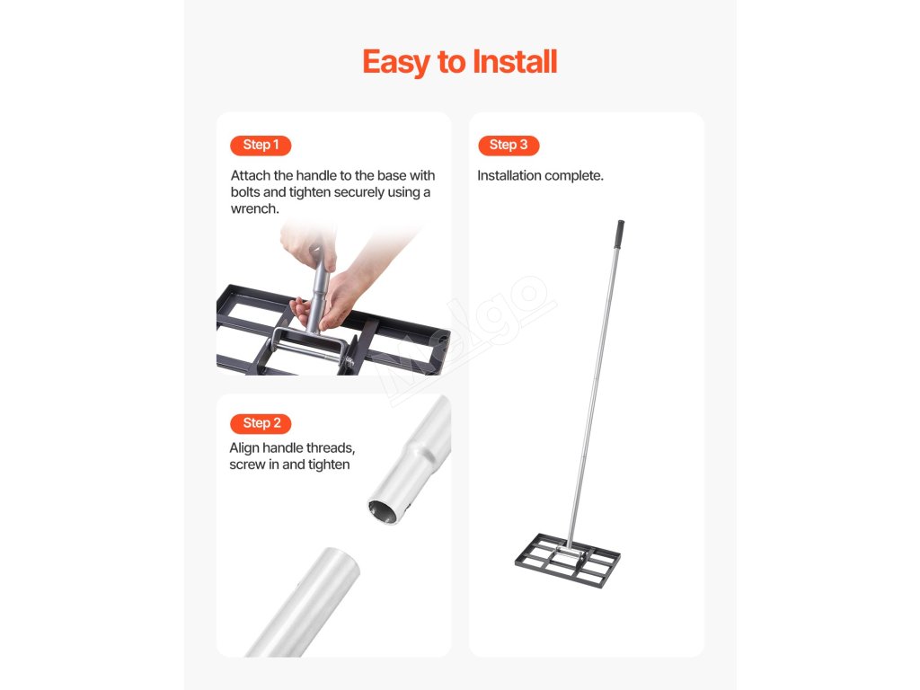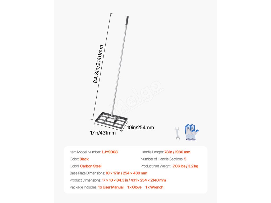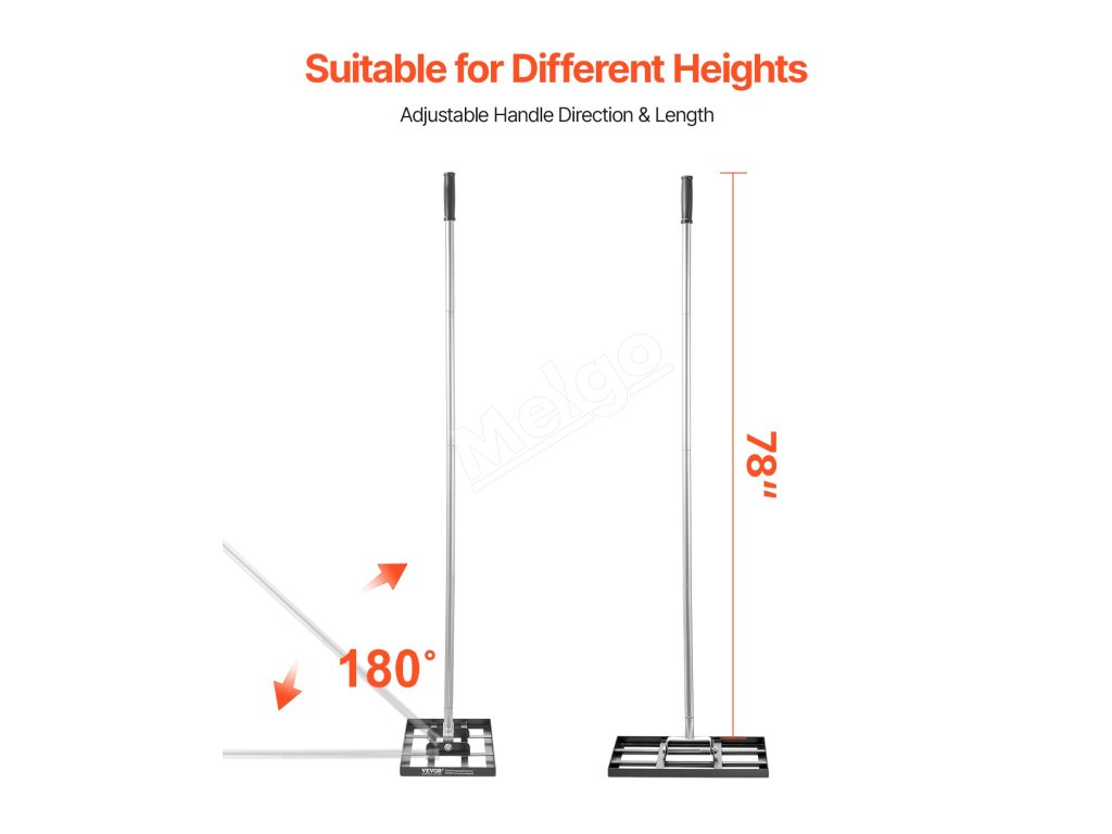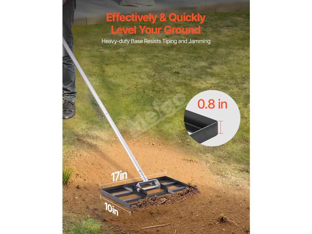 Naše ťažkotonážne hrabličky na vyrovnávanie trávnika so širokou zemnou doskou účinne vyrovnávajú pôdu. Tvrdá uhlíková oceľ s povrchom odolným proti korózii a pevným zváraním na dlhý čas vonku. Rukoväť otočná o 180° s gumovou objímkou na pohodlné uchopenie. Ideálne na farmy, záhrady, golfové ihriská.
