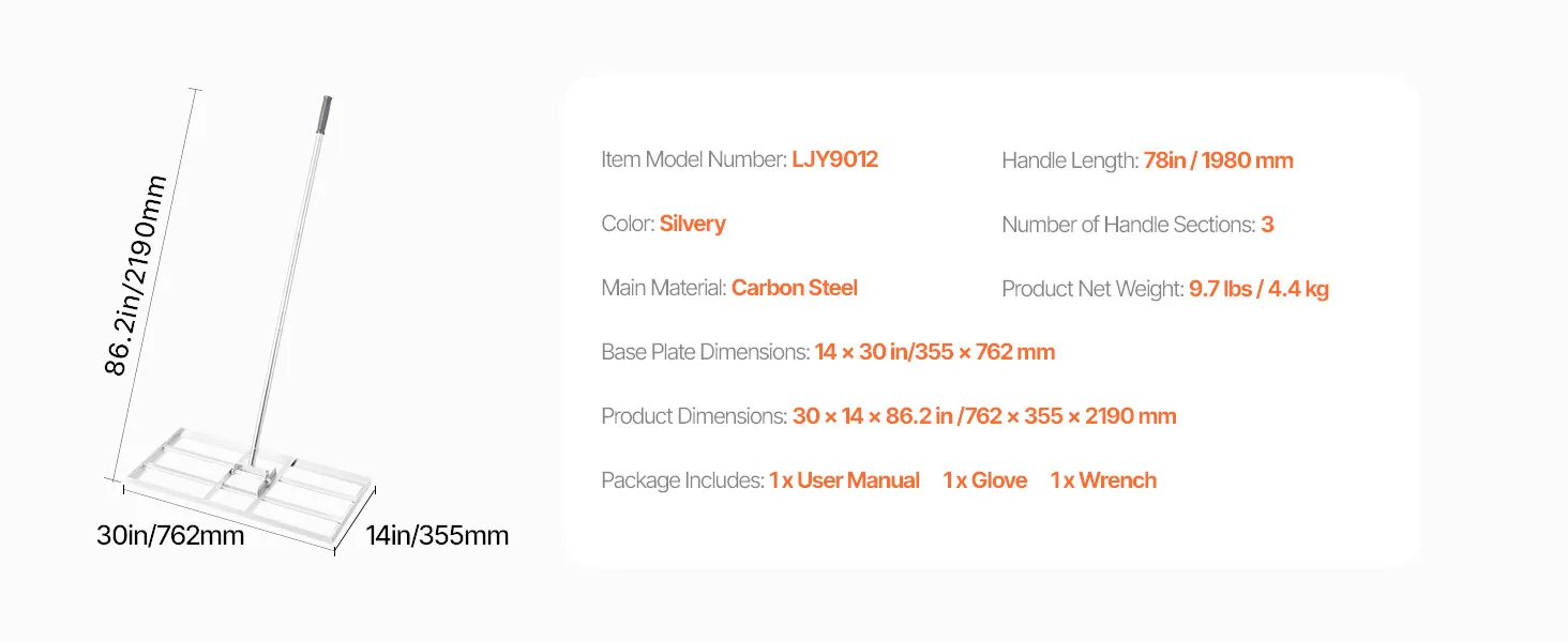 Vyrovnávač trávnika 83.9 in rukoväť 48×10 in platňa 2 polohy