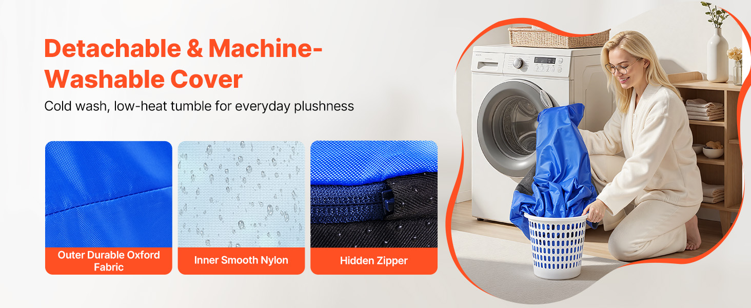Skrytý zips bezpečný pre deti umožňuje rýchle odstránenie na pranie v práčke. Jednoducho rozopnite zips, vyberte vnútornú podšívku a perte na jemný cyklus v studenej vode. Vodotesná vnútorná vrstva zabraňuje prenikaniu potu, rozliatych tekutín a nečistôt, čím zabezpečuje, že podložka pre deti zostane čistá a svieža.