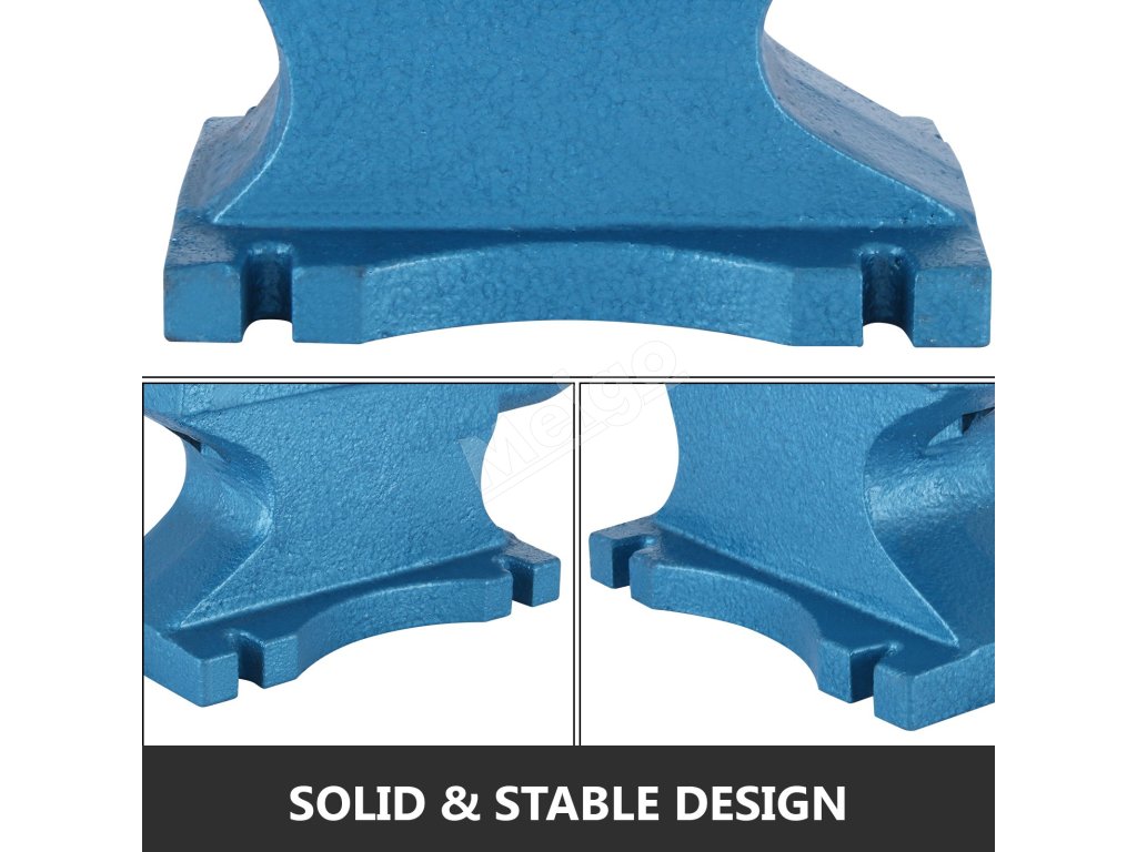 Pevná základňa udržiava kováčsku kovadlinu s hmotnosťou 100 libier/45 kg stabilnú pri manipulácii s kovom alebo kovaní.