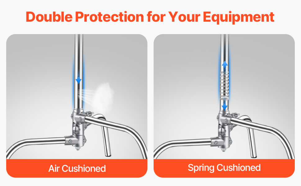 Tento fotografický stojan typu C, navrhnutý špeciálne pre ťažké zariadenia, je vybavený špirálovými zámkami na bezpečné upevnenie v kombinácii s pokročilým systémom vzduchového a pružinového odpruženia. Zabezpečuje, aby vaše zariadenie zostalo stabilné a bezpečné, účinne minimalizuje vibrácie a zabraňuje poškodeniu pri nárazoch alebo otrasoch.