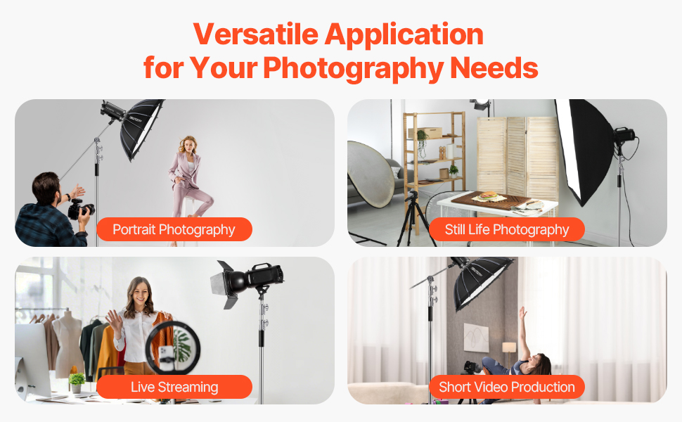 Tento odolný svetelný stojan je ideálny na širokú škálu nastavení vrátane portrétnej fotografie, zátiší, živého vysielania a filmovej produkcie. Spĺňa rozmanité potreby fotografov a kameramanov a ponúka spoľahlivú podporu pri rôznych tvorivých projektoch.