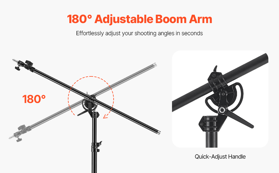 Rameno výložníka nastaviteľné o 180° umožňuje rýchlu a jednoduchú zmenu uhla, vďaka čomu môžete bez námahy zachytiť viacero perspektív alebo upraviť osvetlenie. Náš hliníkový svetelný stojan so vzduchovým polstrovaním výrazne zlepšuje váš pracovný postup, šetrí čas a zvyšuje produktivitu počas záberov.