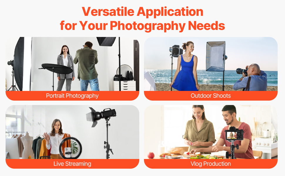 Tento odolný štúdiový svetelný stojan je ideálny na rôzne nastavenia vrátane fotografovania, exteriérových záberov, živého vysielania a filmovej produkcie. Spĺňa rozmanité potreby fotografov a kameramanov a ponúka spoľahlivú podporu pre akýkoľvek projekt.