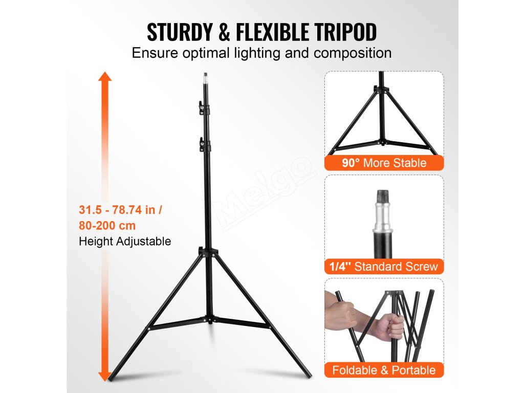 Funkcia flexibilného nastavenia výšky, ktorá sa prispôsobí širokej škále objektov a nastavení pozadia. Jeho nastaviteľná konštrukcia umožňuje používateľom rýchlo upraviť výšku zdroja svetla podľa potreby, aby sa zabezpečilo optimálne osvetlenie a kompozícia. Vďaka tomu sú vaše fotografie prirodzené a živé.