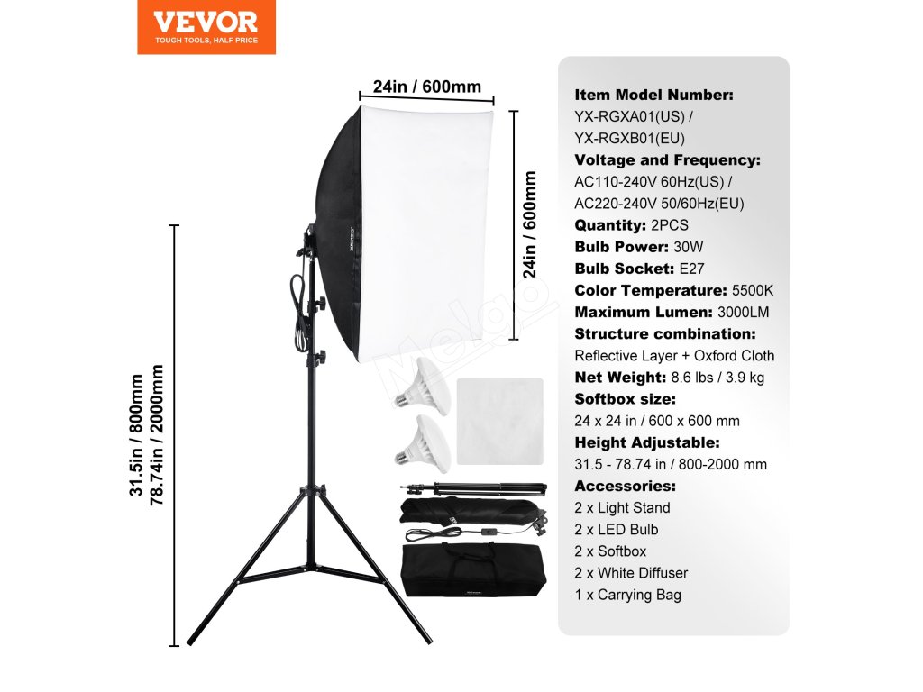 VEVOR 24 x 24 palcová súprava fotografického osvetlenia Softbox