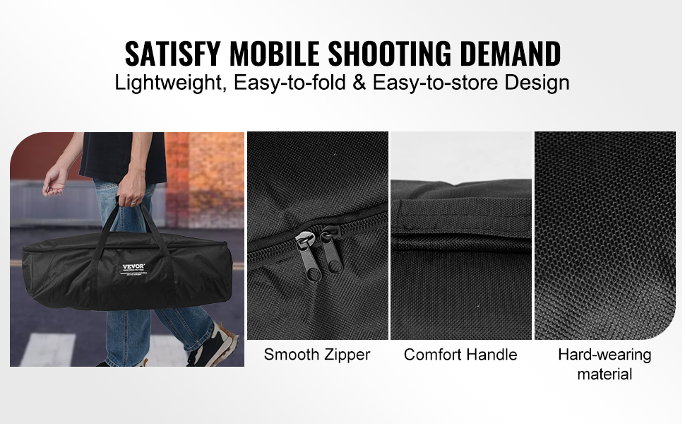 Fotoaparát je navrhnutý tak, aby vyhovoval vašim mobilným potrebám pri fotografovaní, je ľahký ako notebook, preto sa dodáva s. Softbox využíva jednoduchý skladací dizajn, pohodlné skladovanie, ktorý je vhodný pre potreby fotografovania kedykoľvek a kdekoľvek. Je to ideálne prenosné zariadenie pre fotografov, ktoré vám umožní fotografovať, kedy chcete.