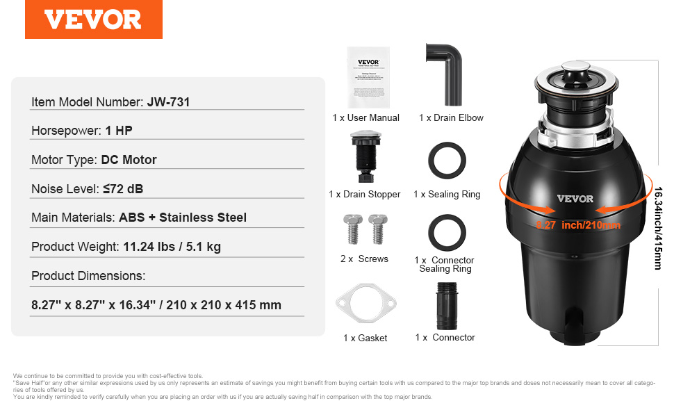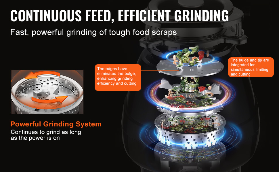 Rozlúčte sa s hromadením odpadu a nepríjemným zápachom! Vybavený výkonným jednosmerným motorom s výkonom 1 HP, ktorý pracuje pri 3960 otáčkach za minútu, si tento drvič potravinového odpadu s nepretržitým podávaním bez námahy poradí s odolnými zvyškami a udrží vašu kuchyňu čistú a bez zápachu. Užite si bezproblémové, rýchle a efektívne riešenie na likvidáciu odpadu.