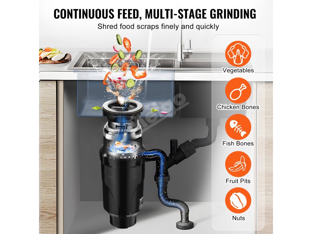Rozlúčte sa s hromadením odpadu a nepríjemným zápachom! Vybavený výkonným jednosmerným motorom s výkonom 1/2 HP, ktorý pracuje pri 3820 otáčkach za minútu, si tento drvič potravinového odpadu s nepretržitým podávaním bez námahy poradí s odolnými zvyškami a udrží vašu kuchyňu čistú a bez zápachu. Užite si bezproblémové, rýchle a efektívne riešenie na likvidáciu odpadu.