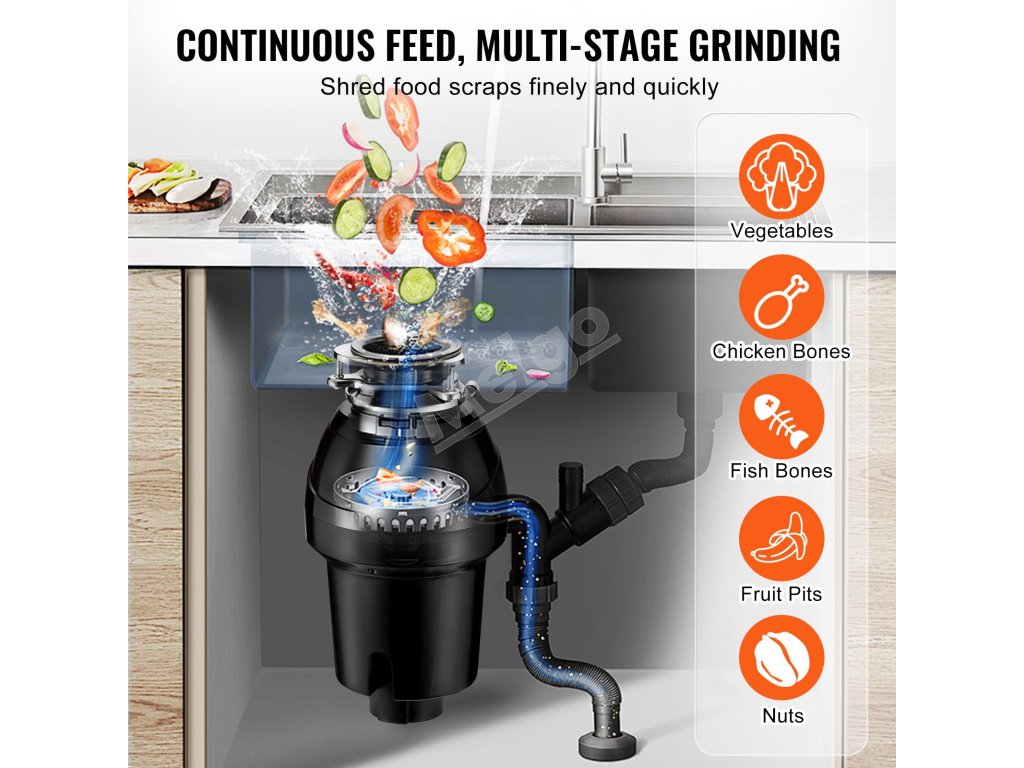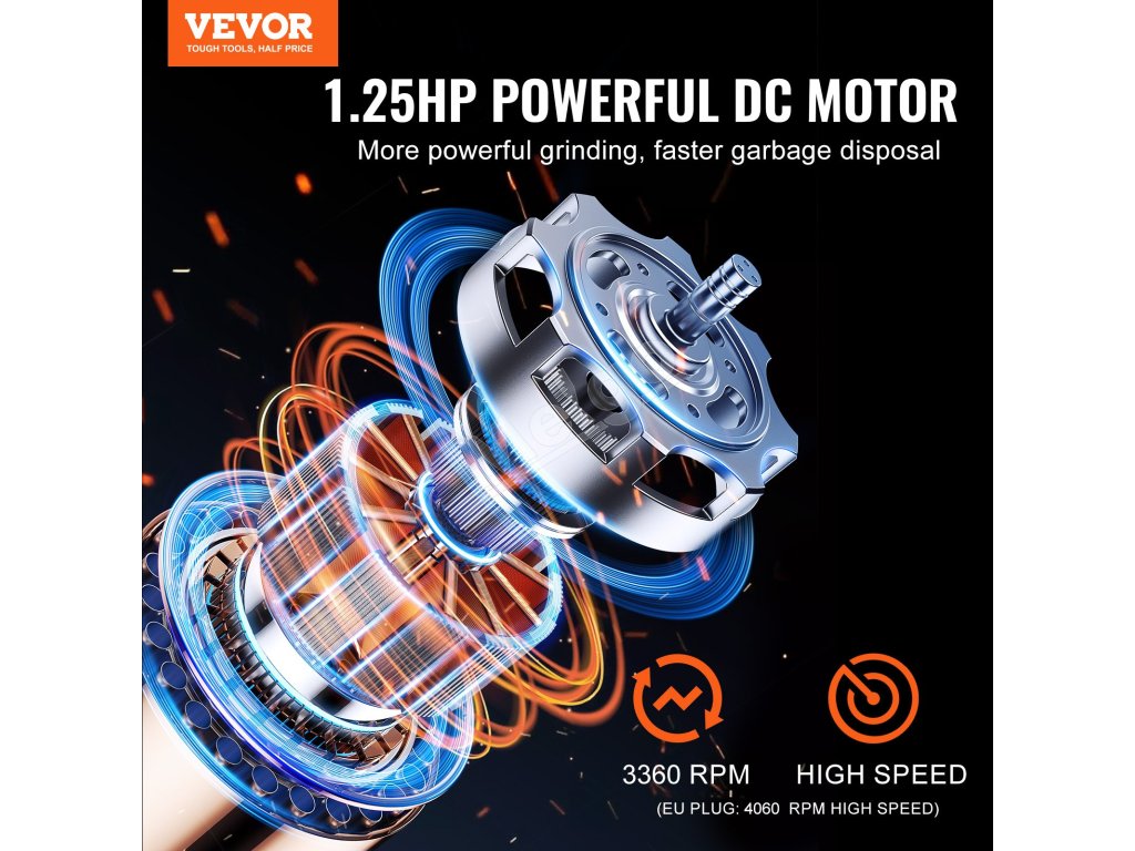 Rozlúčte sa s hromadením odpadu a nepríjemným zápachom! Vybavený výkonným jednosmerným motorom s výkonom 1,25 HP, ktorý pracuje pri 4060 otáčkach za minútu, si tento drvič potravinového odpadu s nepretržitým podávaním bez námahy poradí s odolnými zvyškami a udrží vašu kuchyňu čistú a bez zápachu. Užite si bezproblémové, rýchle a efektívne riešenie na likvidáciu odpadu.