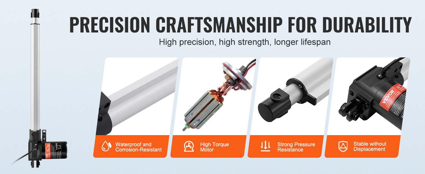 Zvládnite náročné úlohy so 16-palcovým lineárnym pohonom VEVOR. Vďaka presnému a stabilnému pohybu rýchlosťou 0,19"/s a robustnej aktivačnej sile 1320 libier ponúka spoľahlivú podporu a efektívny pohyb pre priemyselnú automatizáciu, ťažkotonážne zdvíhacie systémy, mechanické zariadenia, dopravu a iné.