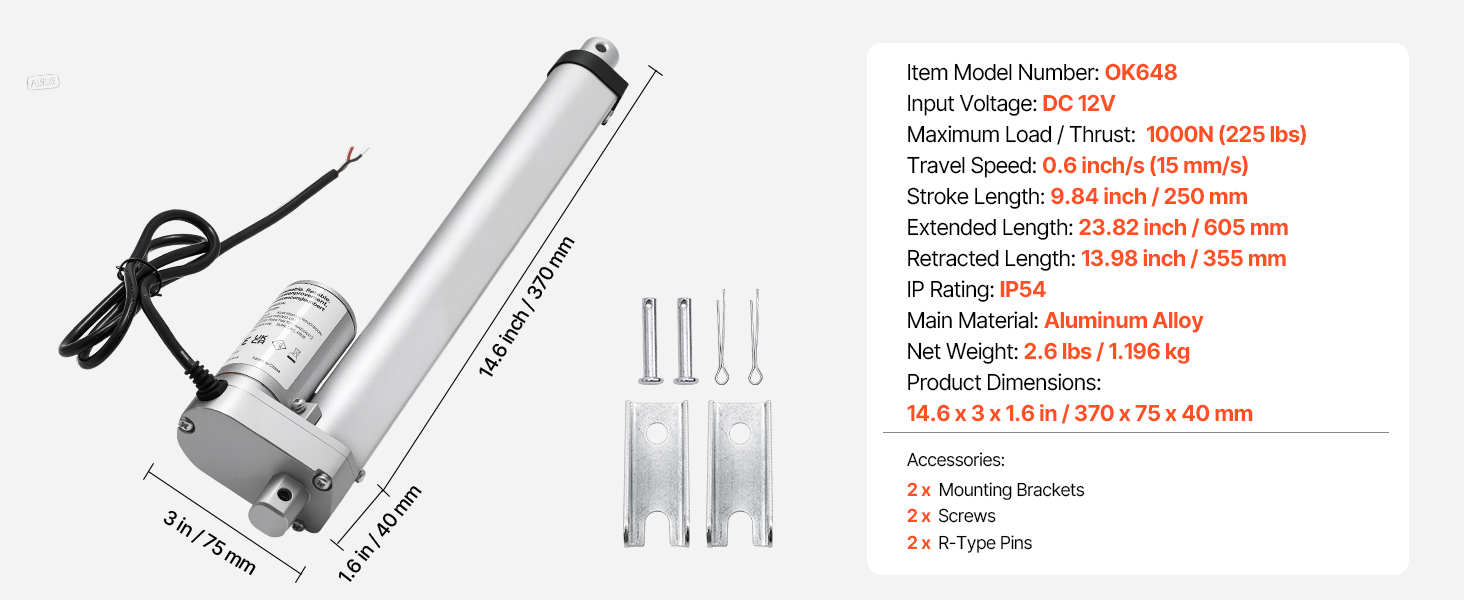 Vďaka stabilnému krútiacemu momentu 225 libier, vysokej rýchlosti 0,6 palca/s, stupňu krytia IP54 a tichej prevádzke je tento 12 V lineárny aktuátor ideálny pre domáce a ďalšie automatizačné aplikácie. Poskytuje efektívnejší a pohodlnejší používateľský zážitok, čím výrazne zvyšuje celkovú kvalitu vášho života.