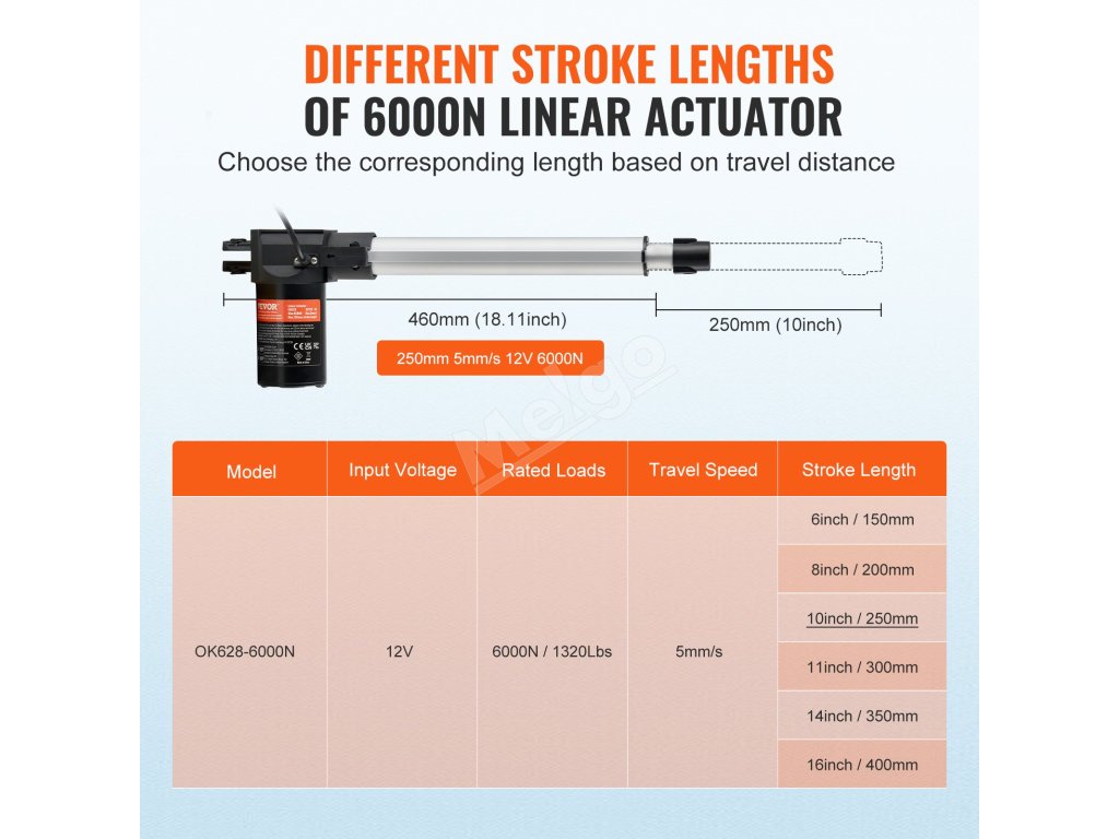 Lineárny aktuátor 12V zdvih 25.4 cm 598.7 kg/6000N 0.5 cm/s IP44
