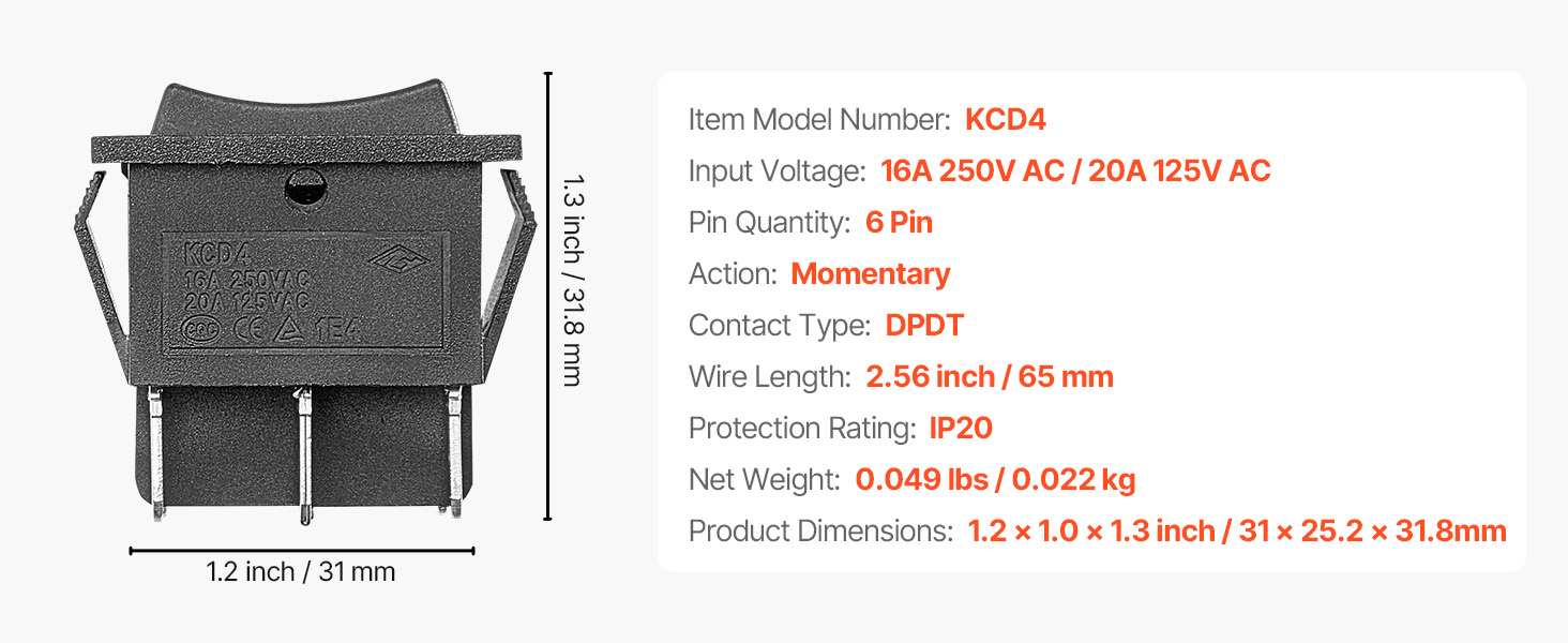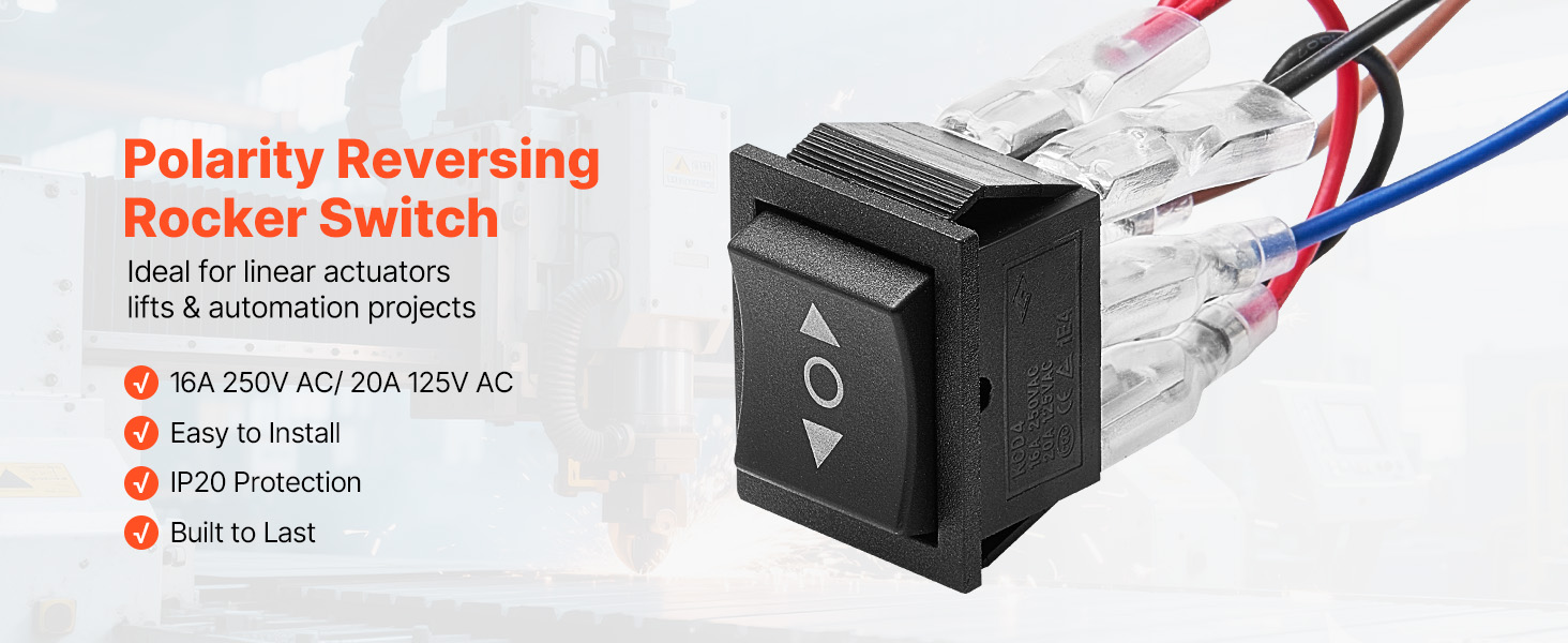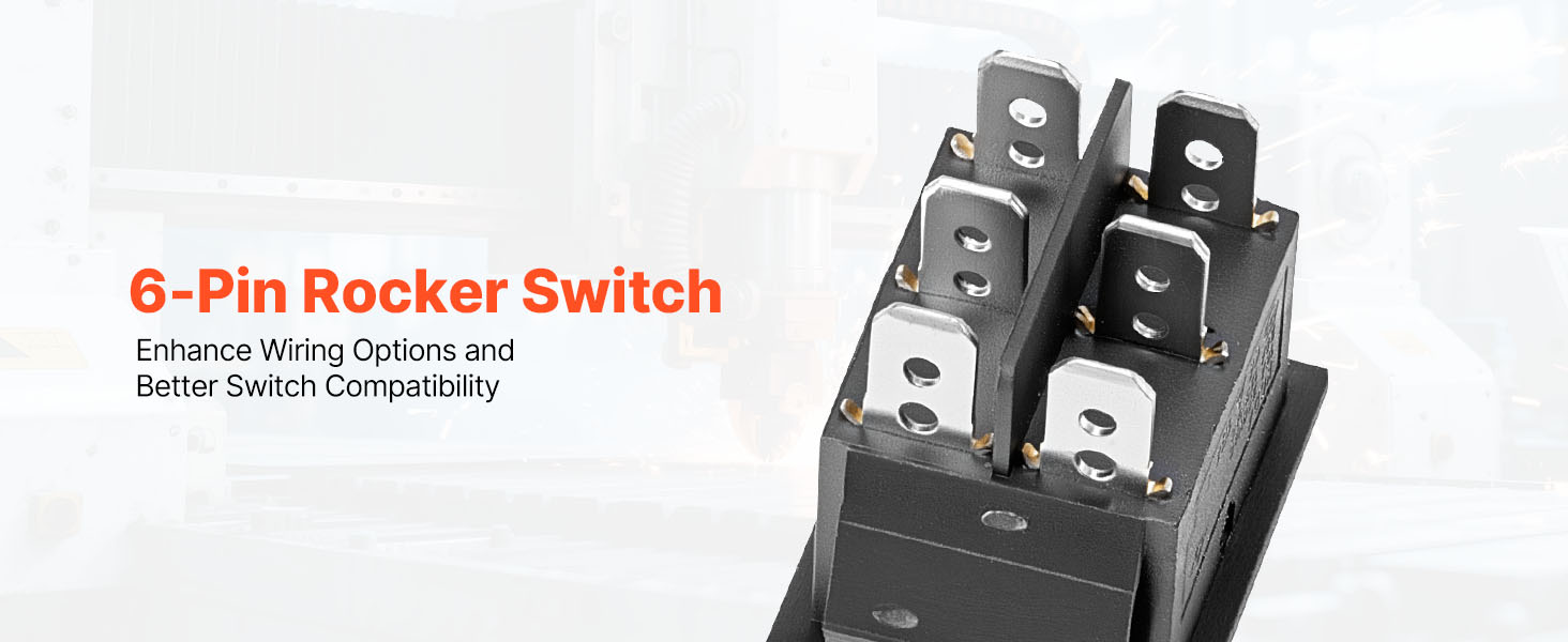VEVOR 6-pinový kolískový spínač je vybavený funkciou okamžitého automatického vynulovania a 3-polohovým dizajnom (ON)-OFF-(ON), ktorý ponúka plynulé ovládanie vpred/vzad. Je dimenzovaný na 16 A pri 250 V AC a 20 A pri 125 V AC a poskytuje spoľahlivý výkon v širokom rozsahu systémov jednosmerných motorov.