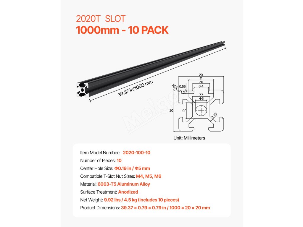 Hliníkový profil t-drážka 20×20 mm 10 ks 1000 mm anodizovaný čierny