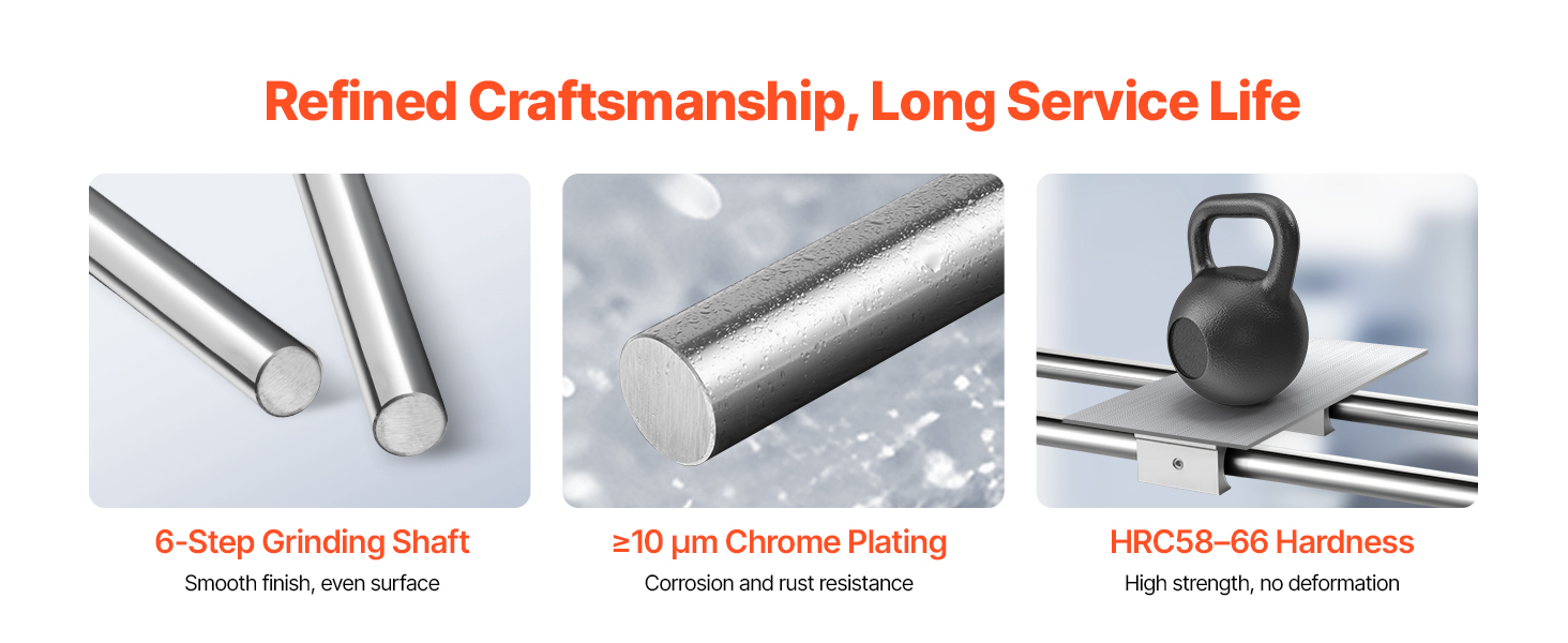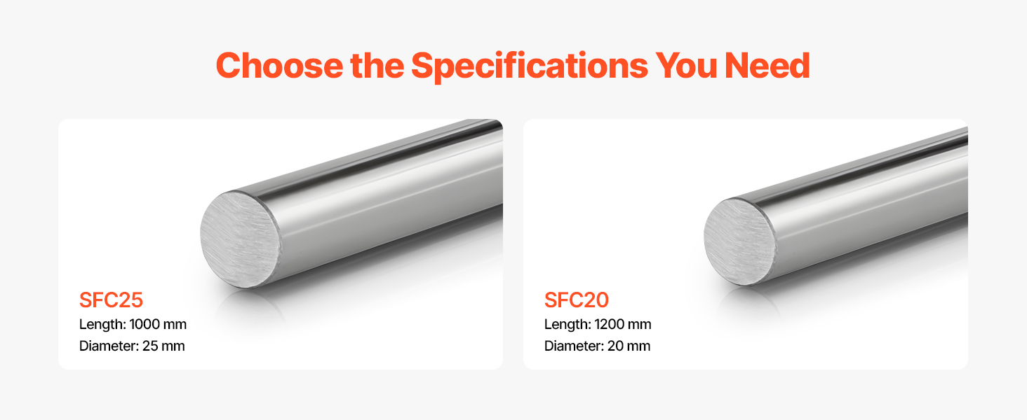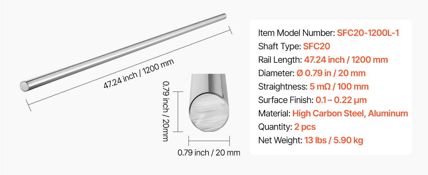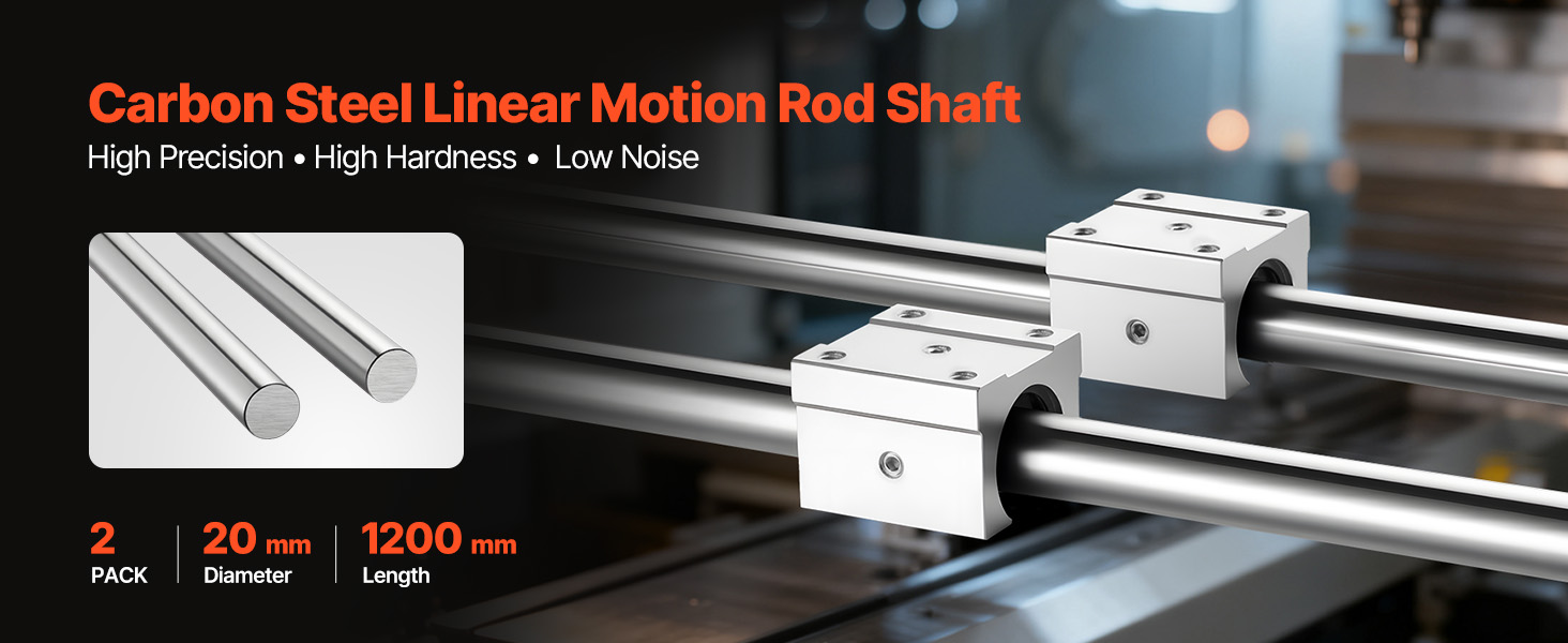 Obsahuje dve lineárne tyče s dĺžkou 1200 mm a priemerom 20 mm pre vaše potreby priemyselnej výroby. Naše tyče sú vyrobené z vysoko tvrdej uhlíkovej ocele s 6-stupňovým procesom brúsenia a galvanizovaným povrchom, odolávajú korózii a zabezpečujú hladký posuv pre všetky kompatibilné lineárne posuvné bloky.