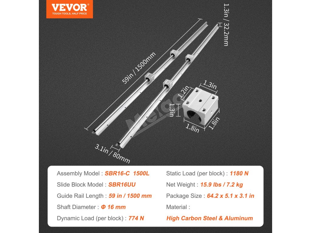 Sada lineárnych lišt SBR16 1500 mm, 2 ks lišty a 4 ks bloky SBR16UU