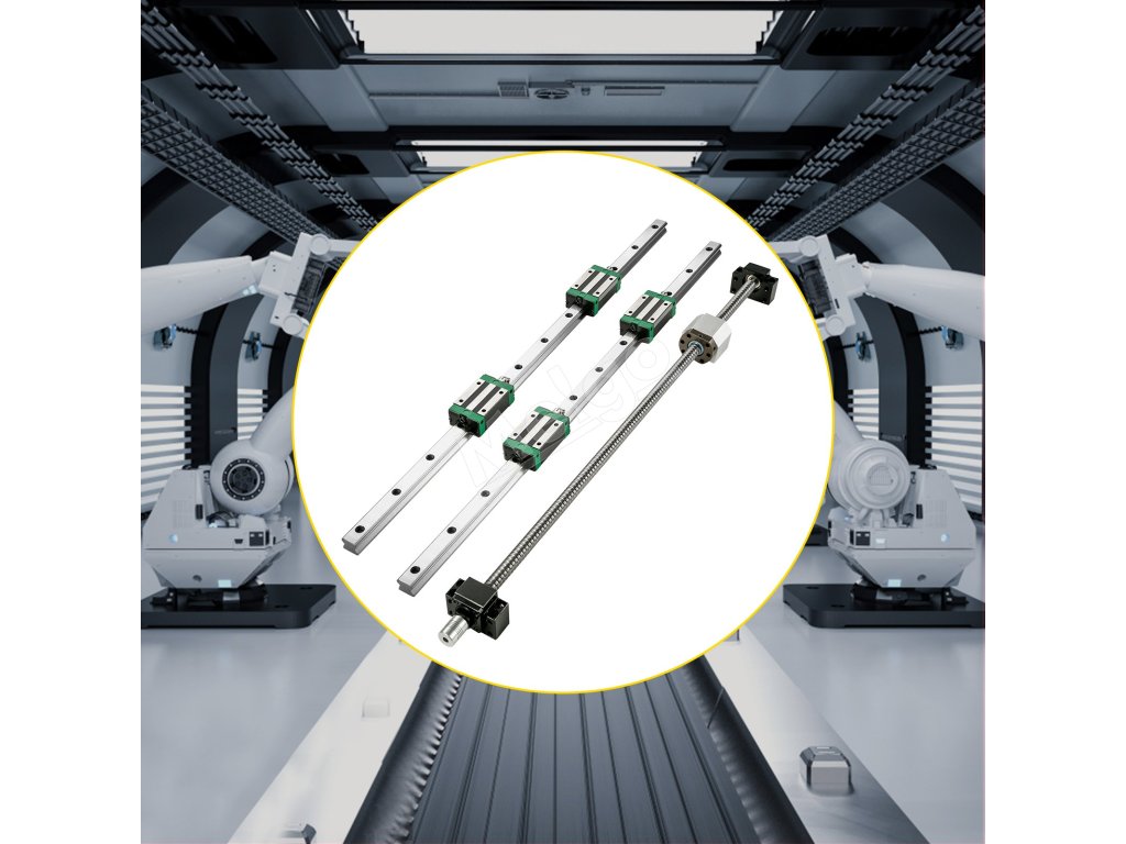 Súprava lineárneho vedenia obsahuje 2 kusy 1700 mm / 66,9" dlhých hriadeľov koľajníc HGR20, 4 bloky a súpravu guľôčkových skrutiek.