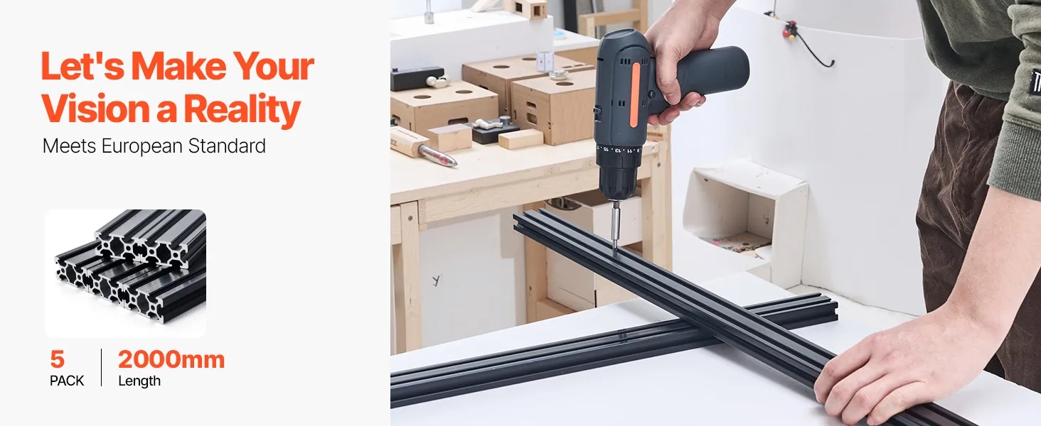 T-slot hliníkový profil 2040, 5 ks, 2000 mm (78.7 in), čierny