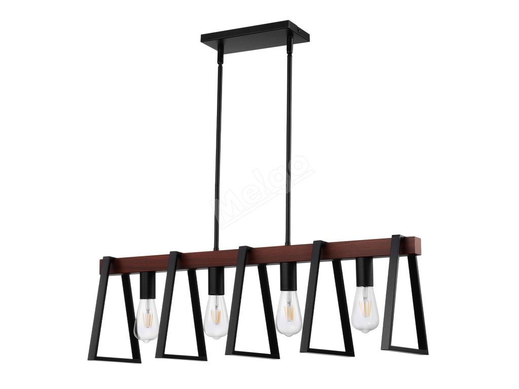 Závesné svietidlo 4× e27, 60W, nastaviteľné, tyče 2×6" a 6×12"