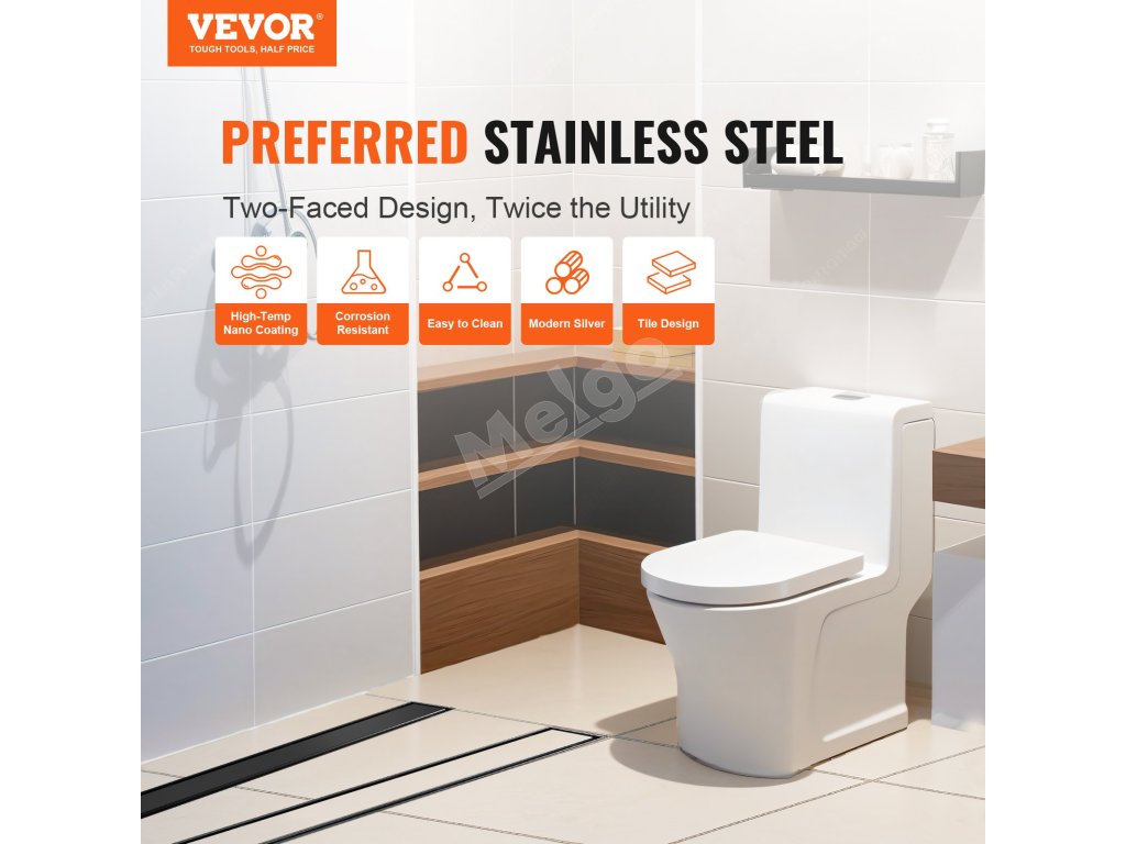 Lineárny sprchový žľab 610 mm nerez 304, kryt na dlažbu, čierny