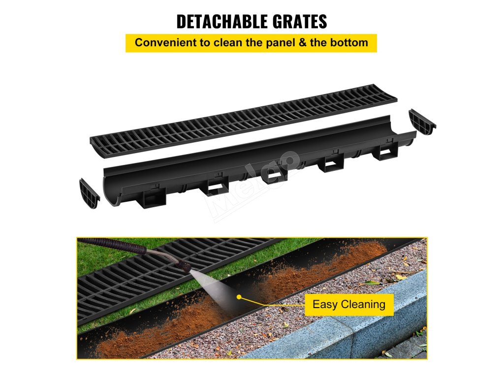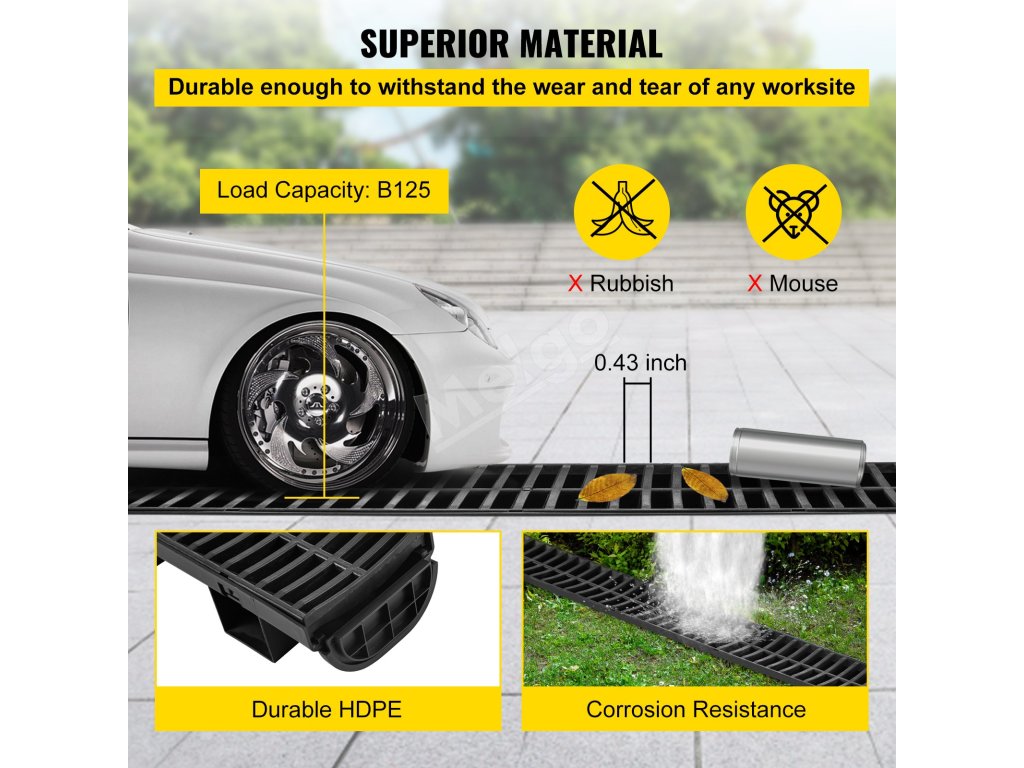 Tento systém odvodnenia priekopy je najlepším riešením na efektívne hospodárenie s vodou. Konštrukcia systému zabezpečuje rýchly prietok vody a jej účinné odvádzanie. To pomáha predchádzať hromadeniu vody na príjazdovej ceste alebo v záhrade. Vysokokvalitný plast HDPE zaručuje jeho odolnosť. Zvládne veľké zaťaženie. Vďaka tomu je ideálny na použitie v obytných aj komerčných priestoroch. Vďaka jednoduchej inštalácii ho môžete rýchlo a efektívne nastaviť. To znamená, že váš priestor zostane suchý a bezpečný. Naša pevná konštrukcia zaručuje, že prežije nepriaznivé poveternostné podmienky. Spoľahlivým a odolným riešeniam na kontrolu vody od spoločnosti VEVOR môžete dôverovať.