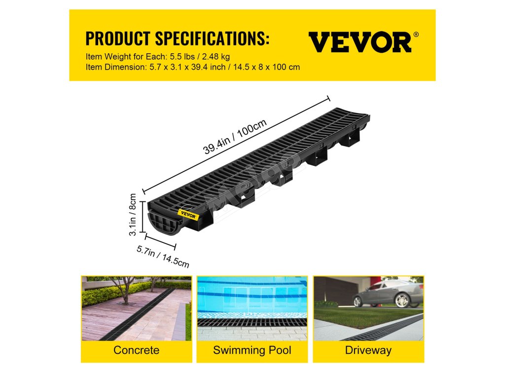 Ide o fantastický pomer ceny a kvality. Je lacnejší ako podobné výrobky z veľkých obchodov. Hoci znižuje náklady, nerobí kompromisy v kvalite. Získate spoľahlivé a účinné riešenie odvodnenia za rozumnú cenu. Vďaka tomu je to neuveriteľne cenovo výhodná voľba pre majiteľov domov a podniky. Trvanlivosť systému zaručuje, že nebudete potrebovať časté výmeny. To navyše prispieva k jeho výhodám úspory nákladov. Výber systému VEVOR zaručuje vynikajúci výkon bez prekročenia vášho rozpočtu.