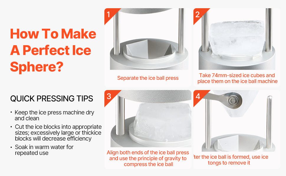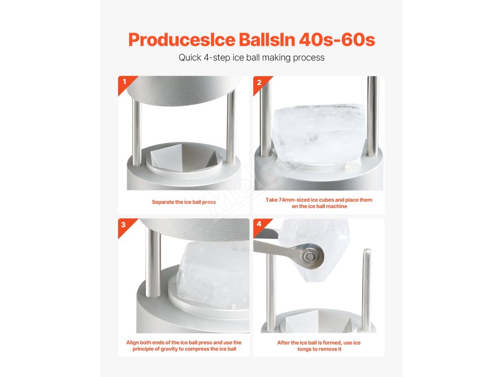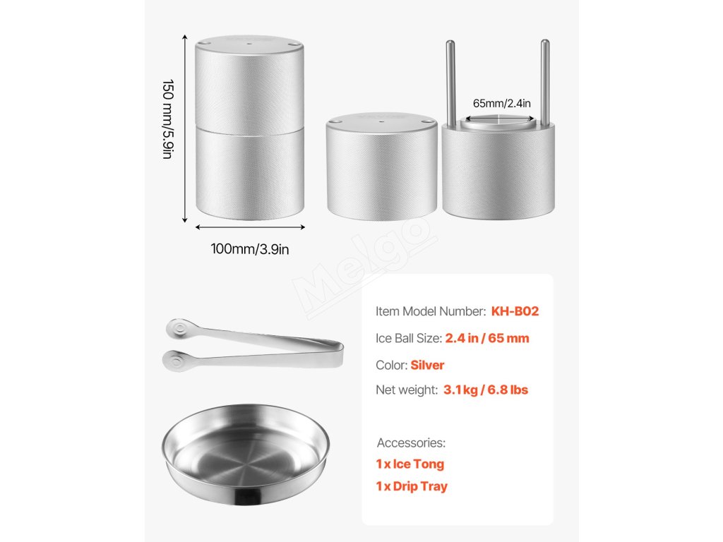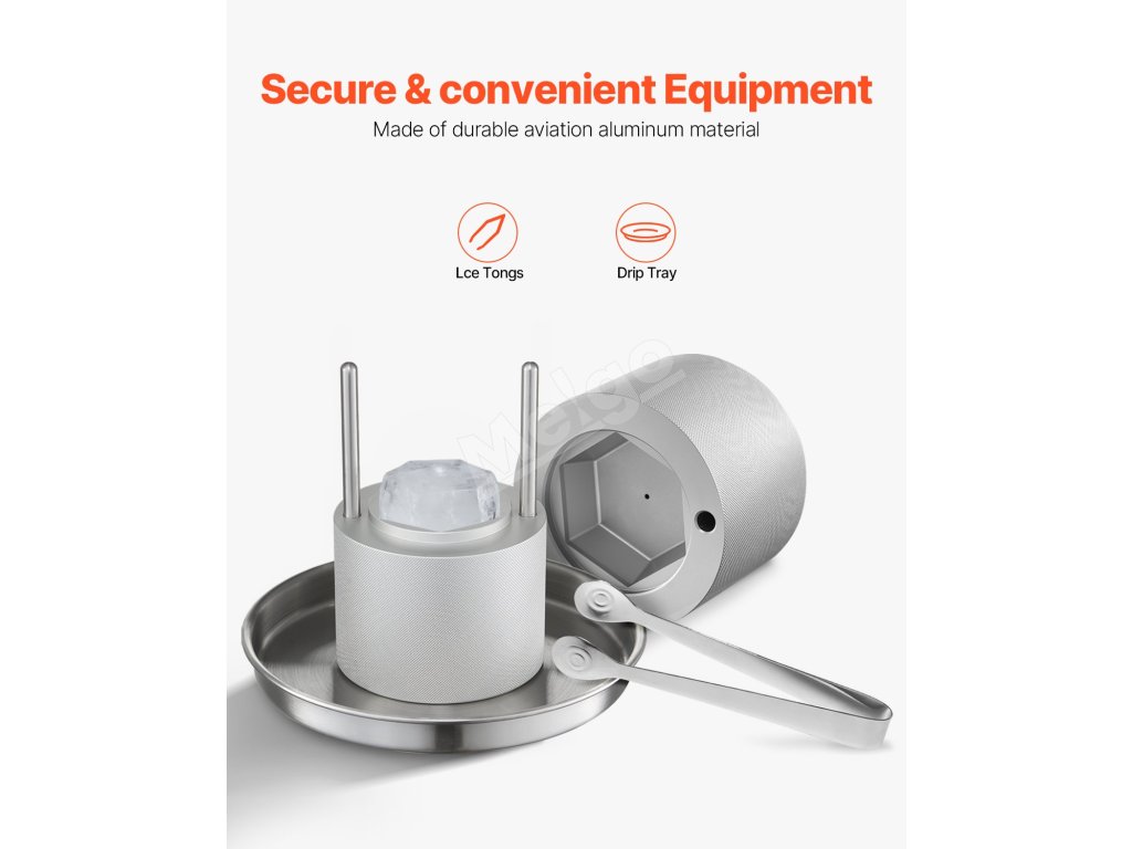Lis na ľadový diamant je vyrobený z leteckého hliníka, pevný a odolný proti korózii. Dodáva sa s kliešťom na ľad a odkvapkávacou miskou na zachytávanie vody uniknutej počas procesu lisovania diamantovej guľôčky ľadu, vďaka čomu zostane vaša stolová doska čistá.