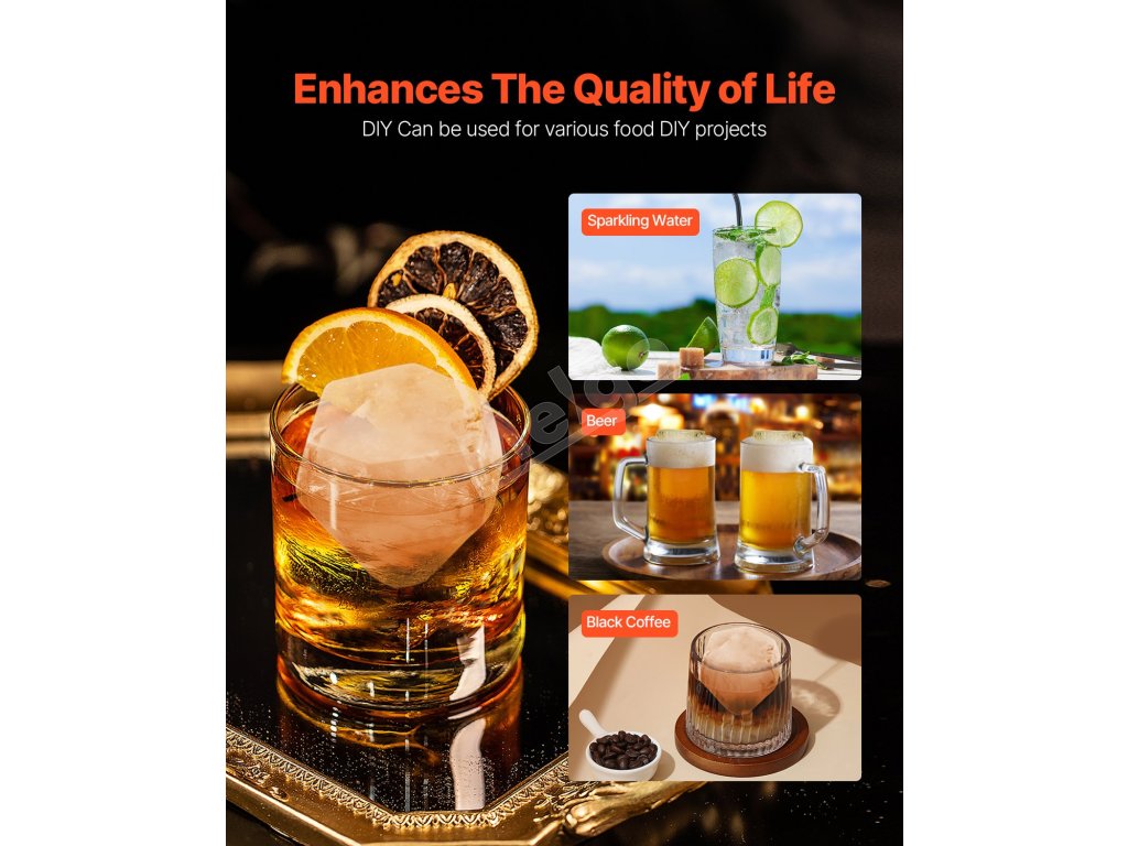 Veľký 2,4-palcový ľadový diamant poskytuje špeciálny vizuálny dojem. Možno ho použiť nielen do kvalitných vín, ale aj pridať do americana, ovocnej šťavy alebo mlieka, čím vytvoríte odlišný chuťový zážitok.
