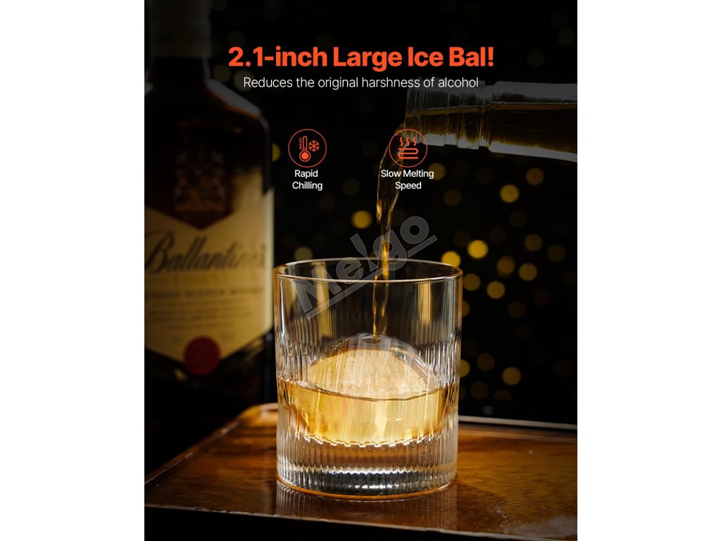Veľká 2,1-palcová ľadová guľa poskytuje špeciálny vizuálny dojem. Možno ju použiť nielen do kvalitných vín, ale aj pridať do vášho americana, ovocnej šťavy alebo mlieka, čím vytvoríte odlišný chuťový zážitok.