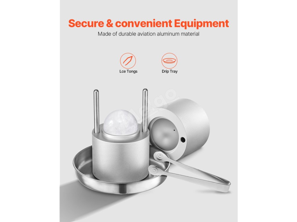 Lis na ľadové gule je vyrobený z leteckého hliníka, pevný a odolný proti korózii. Dodáva sa s kliešťom na ľad a odkvapkávacou miskou na zachytávanie vody uniknutej počas procesu lisovania ľadových guliek, vďaka čomu zostane vaša stolová doska čistá.