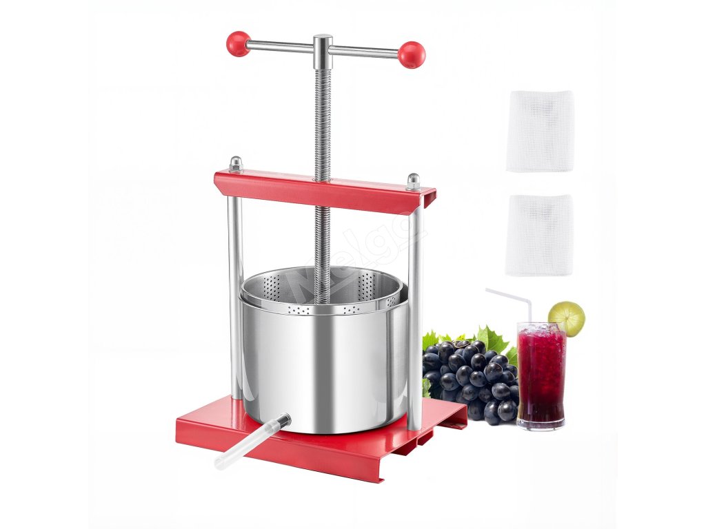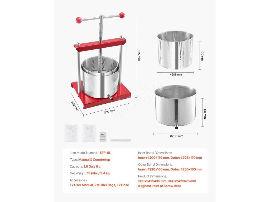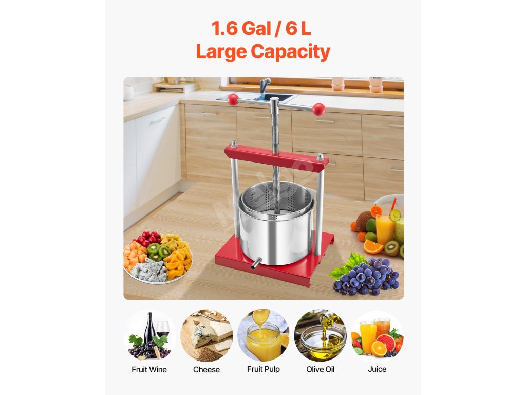 Manuálny lis na ovocie 1.6 Gal/6L, 2 nerezové sudy, t-rukoväť