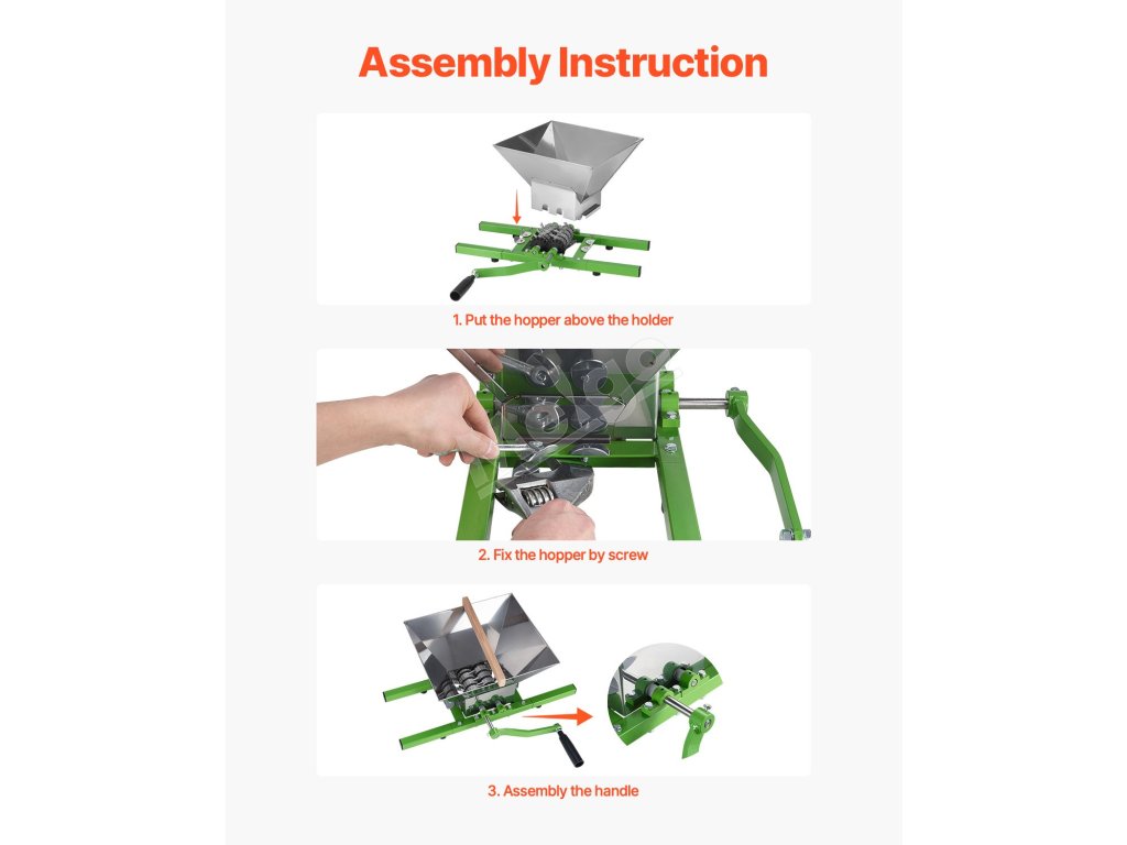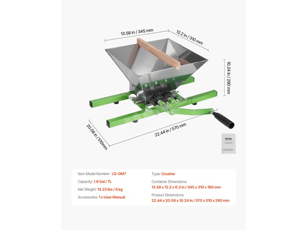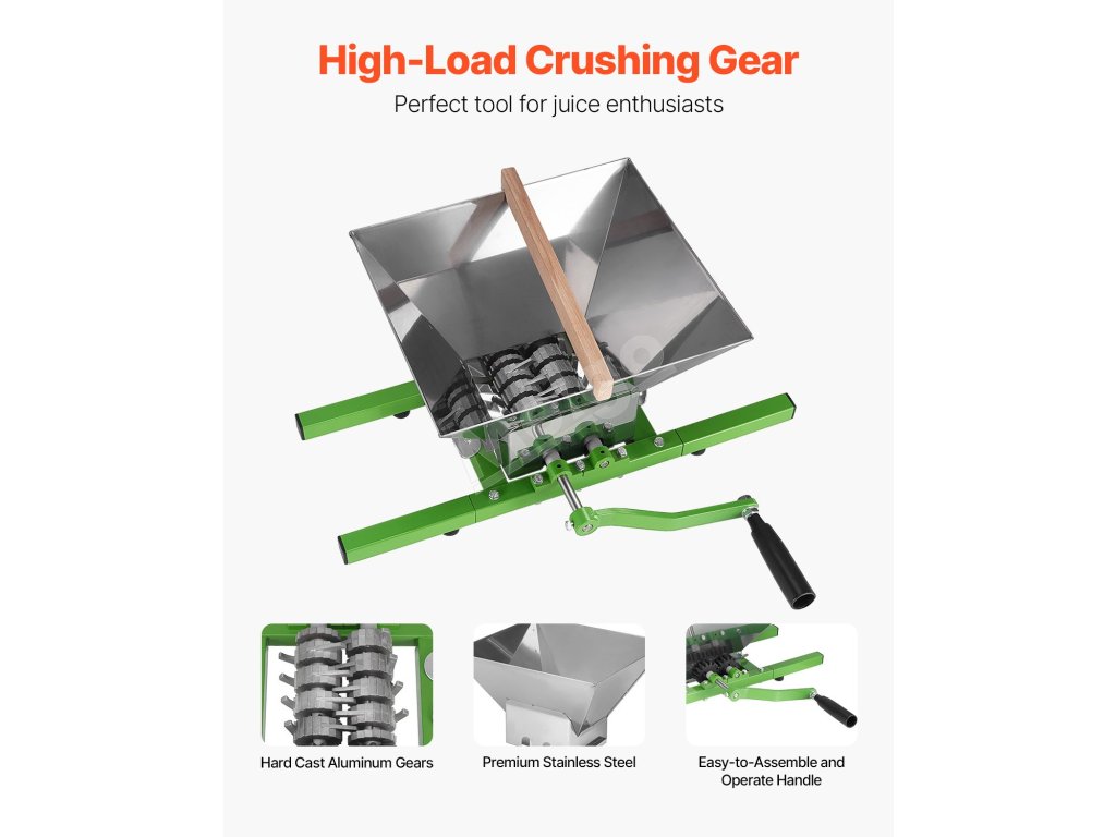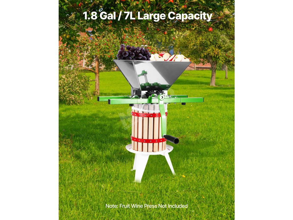 Ručný drvič jabĺk a hrozna 1.8 Gal/7L, nerezový, s valčekom.
