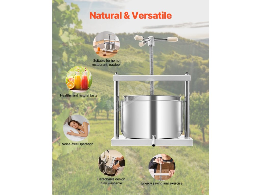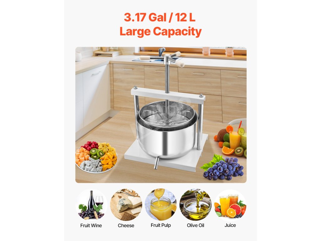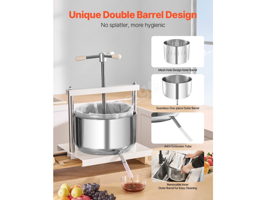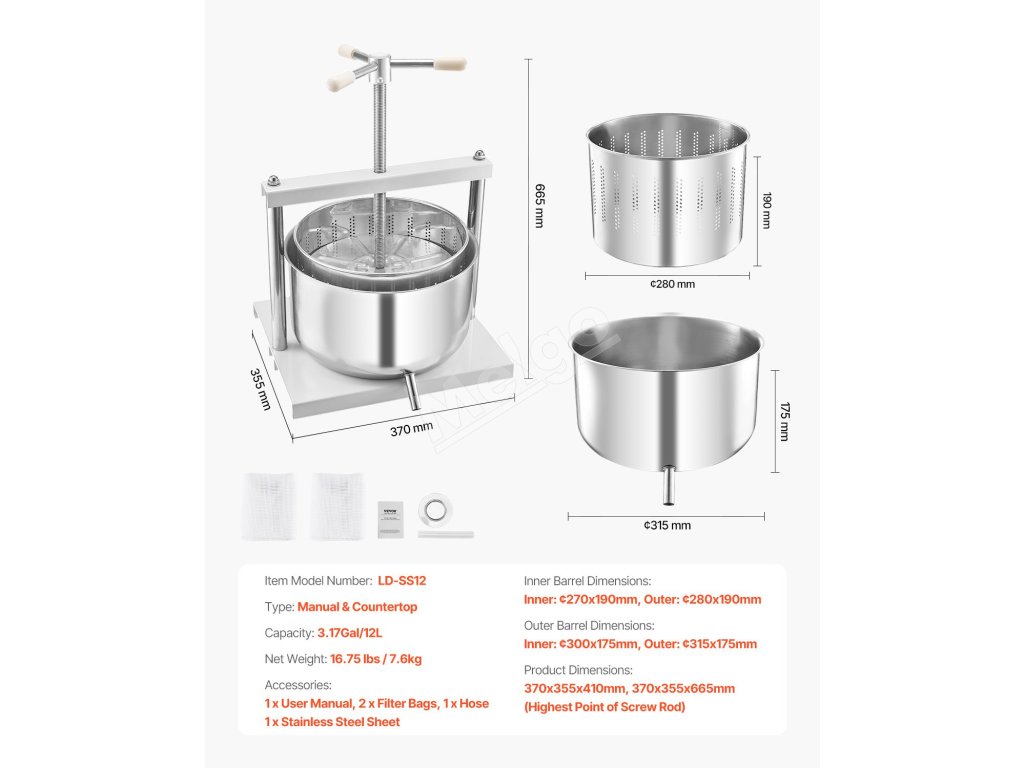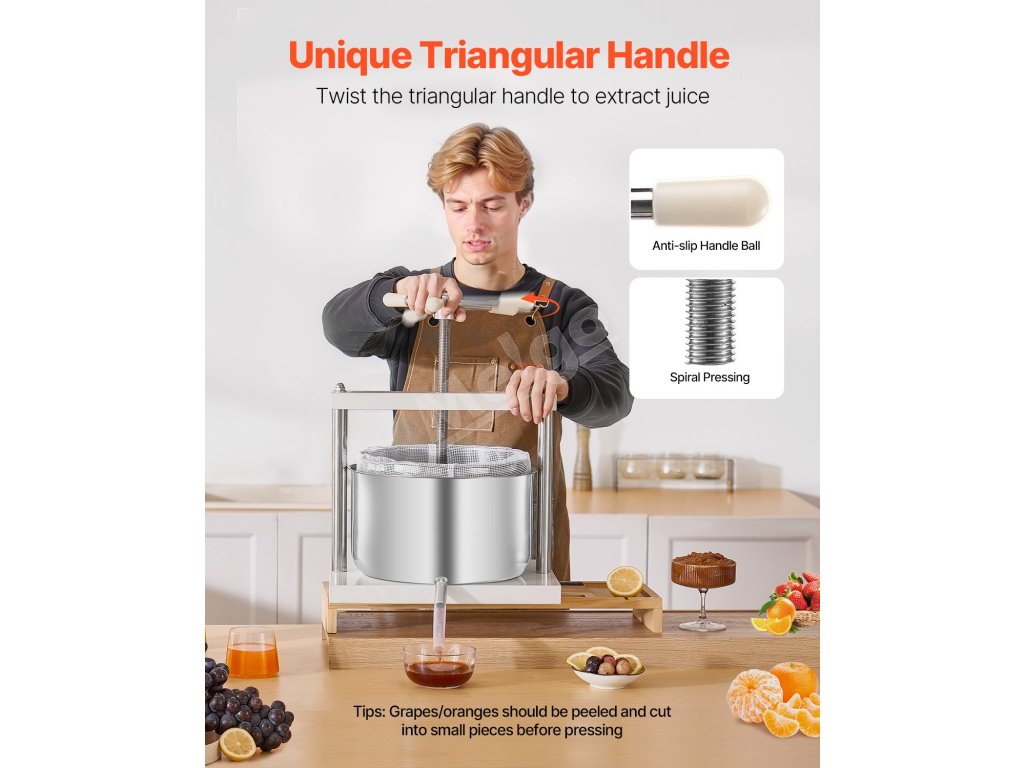 Ručný ovocný lis 3.17 gal/12l, 2 nerezové sudy, trojuholníková rukoväť