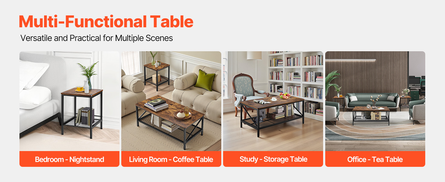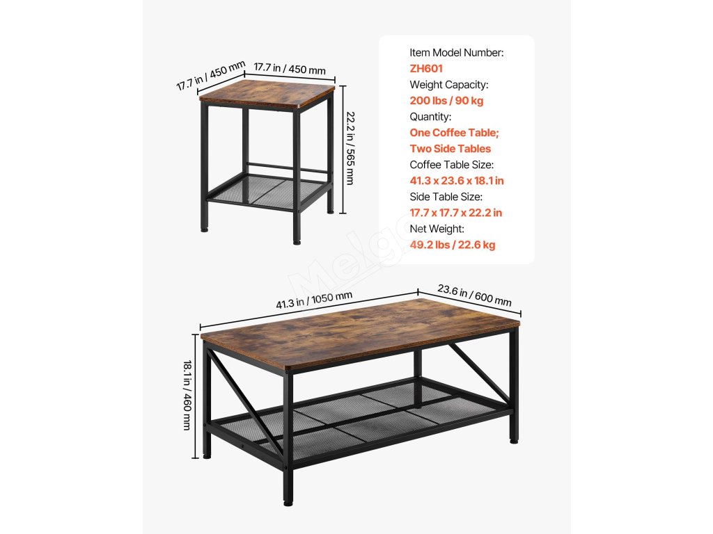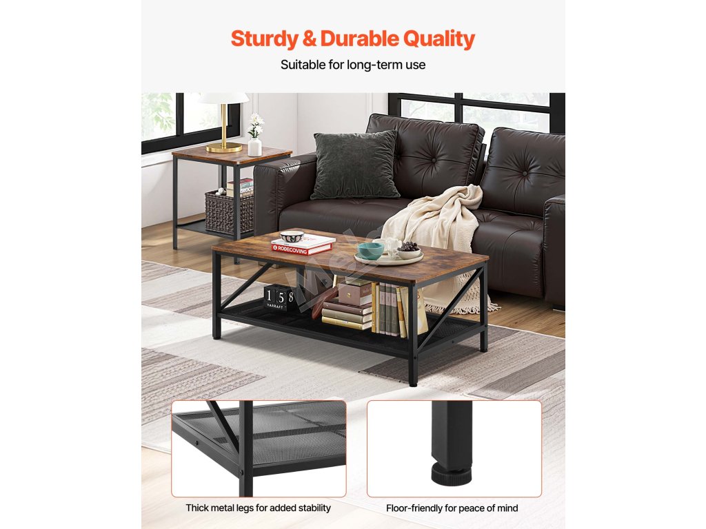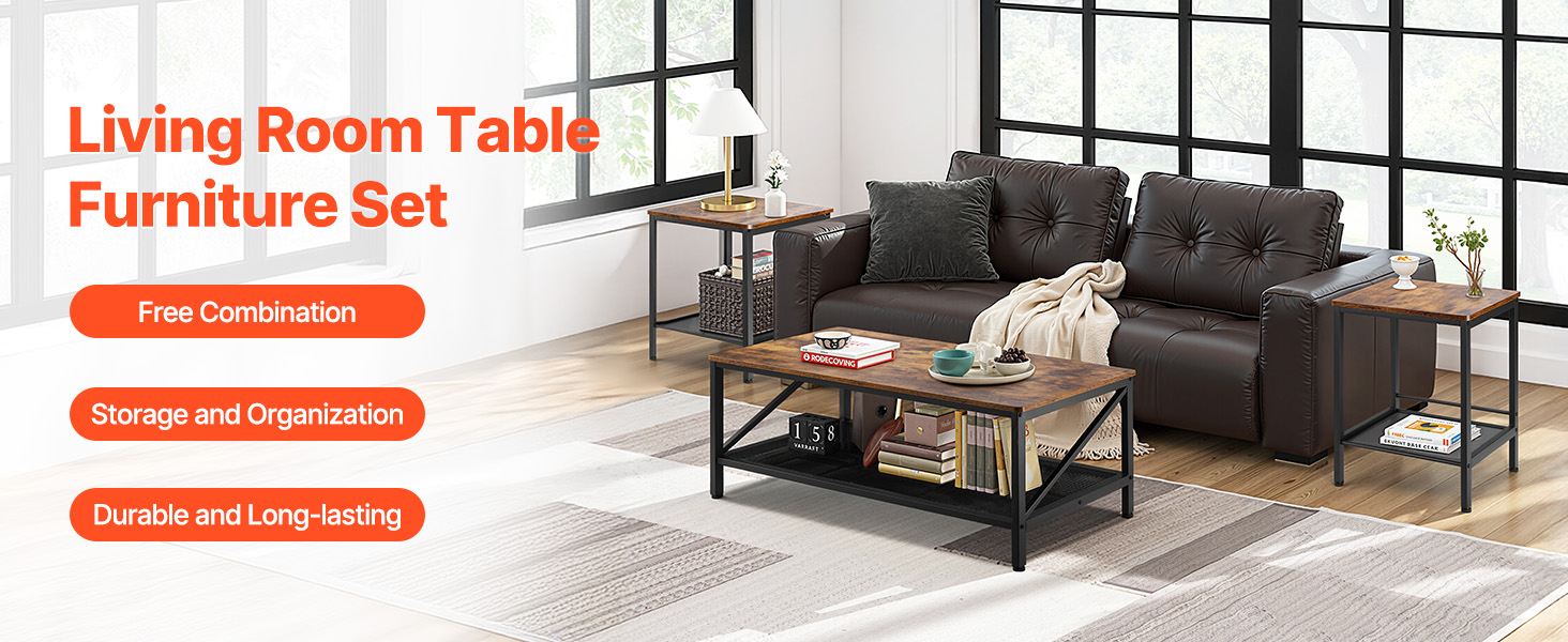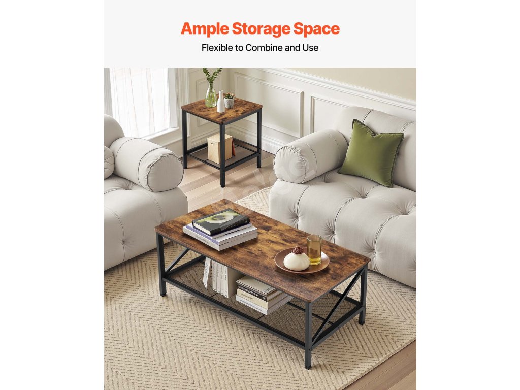 Táto súprava konferenčného a koncového stolíka vytvára vintage lesk, ktorý dopĺňa rôzne štýly bytového zariadenia. Je funkčná a zároveň všestranná, takže sa bez problémov začlení do vášho obytného priestoru.