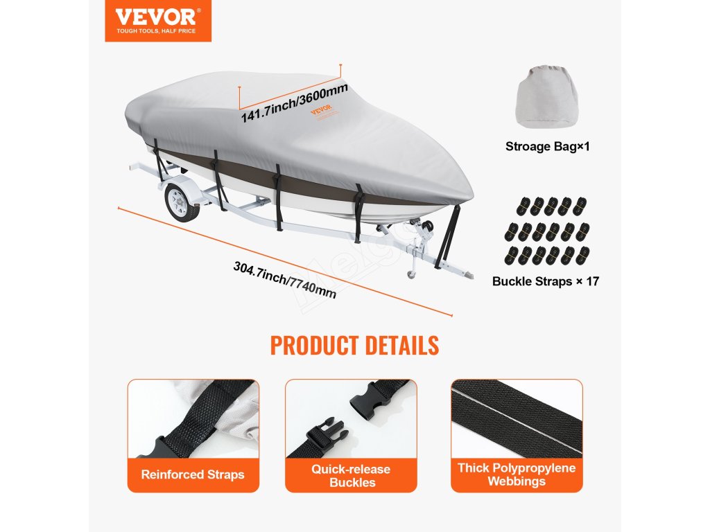 Zosilnené popruhy zabezpečujú dlhodobú odolnosť, zatiaľ čo nastaviteľné pracky s mechanizmom rýchleho uvoľnenia poskytujú pevné uchytenie a jednoduchú inštaláciu alebo demontáž. Plachta na loď typu bass boat je dodávaná aj s úložnou taškou, ktorá slúži zároveň ako plachta na motor.