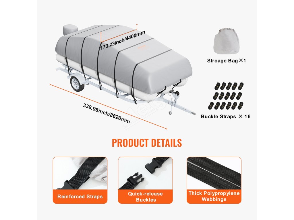 Plachta na pontón 23'–24' 800D PU, 16 popruhov, šírka do 102"