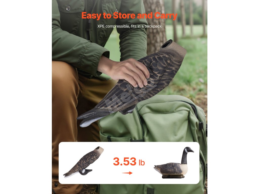 Táto záhradná dekoračná vábnička vyrobená z materiálu XPE je pevná a odolná. Je tiež stlačiteľná, takže je kompaktná a ľahko sa prenáša. Keď ju nepoužívate, môžete ju ľahko uskladniť a vytiahnuť vždy, keď ste pripravení loviť!