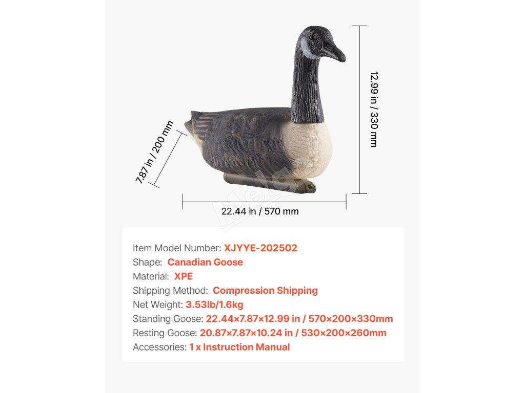 | Veľkosť stojacej husi | 22.44x7,87x12,99 in / 570x200x330 mm |